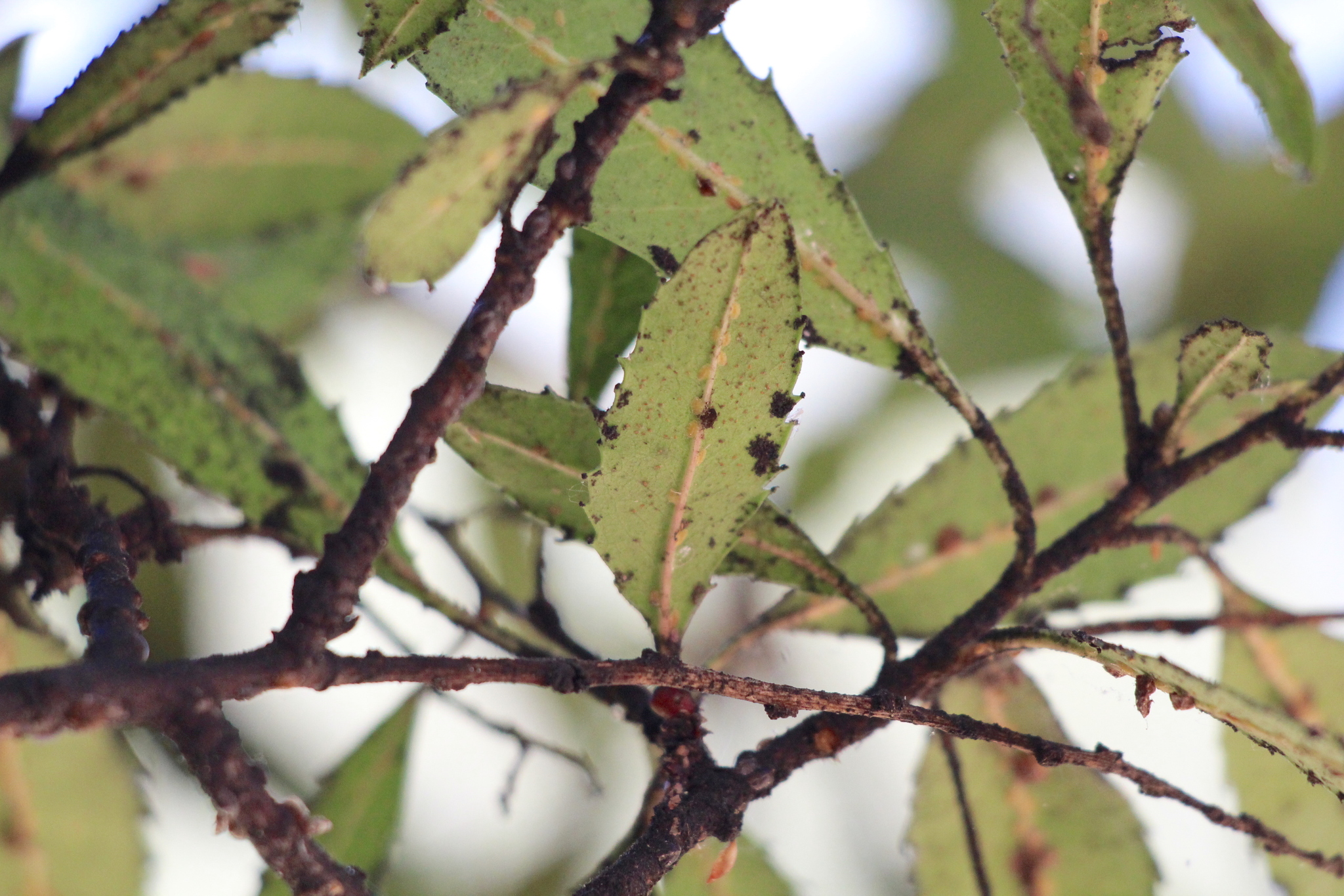 Liothrips ilex | species | Heteromeles arbutifolia | species | interactsWith | Animalia | Arthropoda | Insecta | Thysanoptera | Phlaeothripidae | Liothrips | Plantae | Tracheophyta | Magnoliopsida | Rosales | Rosaceae | Heteromeles | 34.126083 | -118.639678 | 2021 | 4 | 20 | http://creativecommons.org/licenses/by-nc/4.0/ | https://www.inaturalist.org/observations/74834127 | |