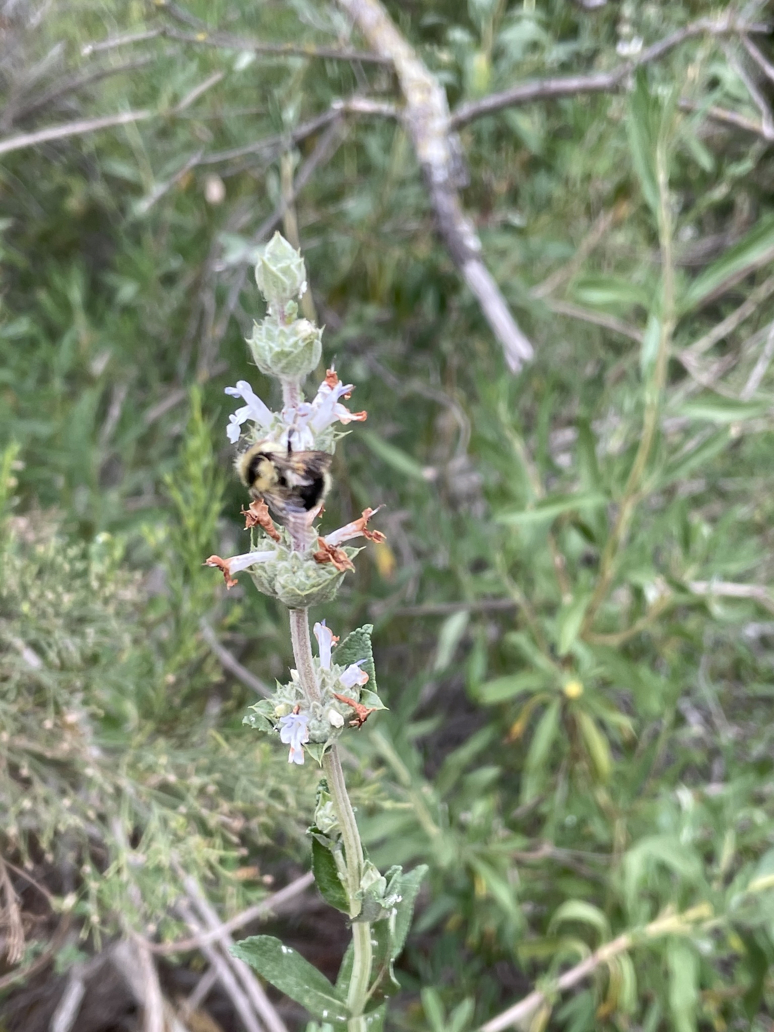 Bombus melanopygus | species | Salvia mellifera | species | visitsFlowersOf | Animalia | Arthropoda | Insecta | Hymenoptera | Apidae | Bombus | Plantae | Tracheophyta | Magnoliopsida | Lamiales | Lamiaceae | Salvia | 32.84008 | -117.040394 | 2021 | 4 | 22 | http://creativecommons.org/licenses/by-nc/4.0/ | https://www.inaturalist.org/observations/74854101 |