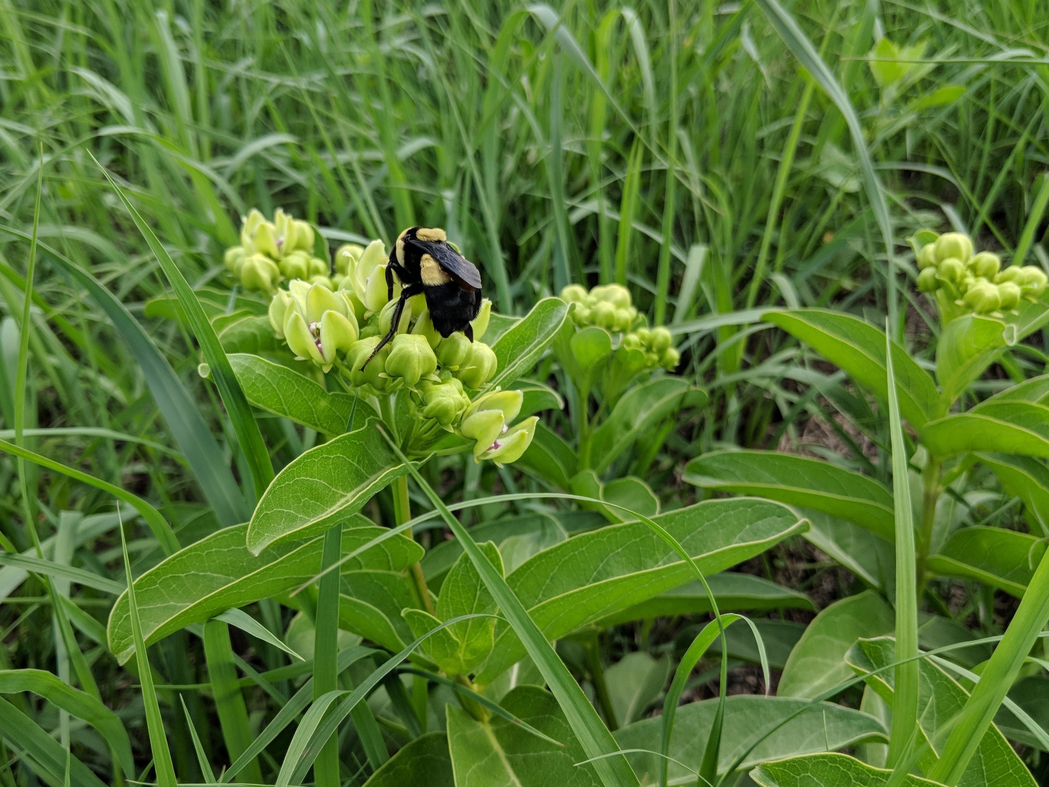 Bombus fraternus | species | Asclepias viridis | species | visitsFlowersOf | Animalia | Arthropoda | Insecta | Hymenoptera | Apidae | Bombus | Plantae | Tracheophyta | Magnoliopsida | Gentianales | Apocynaceae | Asclepias | 37.540392 | -97.684136 | 2018 | 5 | 15 | http://creativecommons.org/licenses/by-nc/4.0/ | https://www.inaturalist.org/observations/74882262 | |