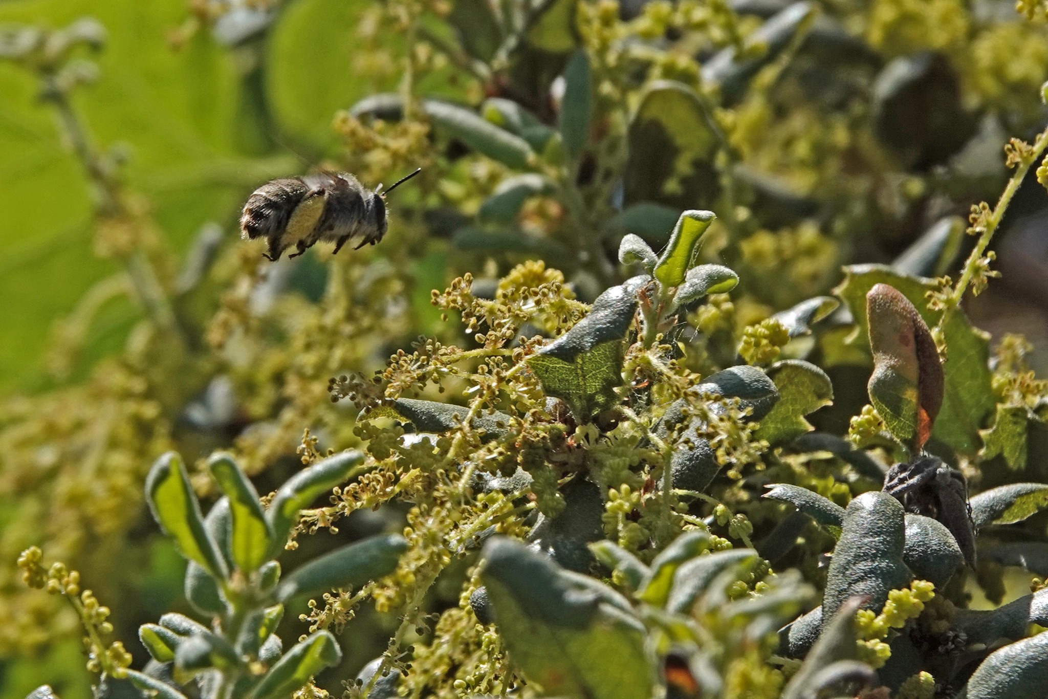 Habropoda depressa | species | Quercus durata | species | eats | Animalia | Arthropoda | Insecta | Hymenoptera | Apidae | Habropoda | Plantae | Tracheophyta | Magnoliopsida | Fagales | Fagaceae | Quercus | 37.21083 | -121.788606 | 2021 | 4 | 21 | http://creativecommons.org/licenses/by-nc/4.0/ | https://www.inaturalist.org/observations/74828165 | |