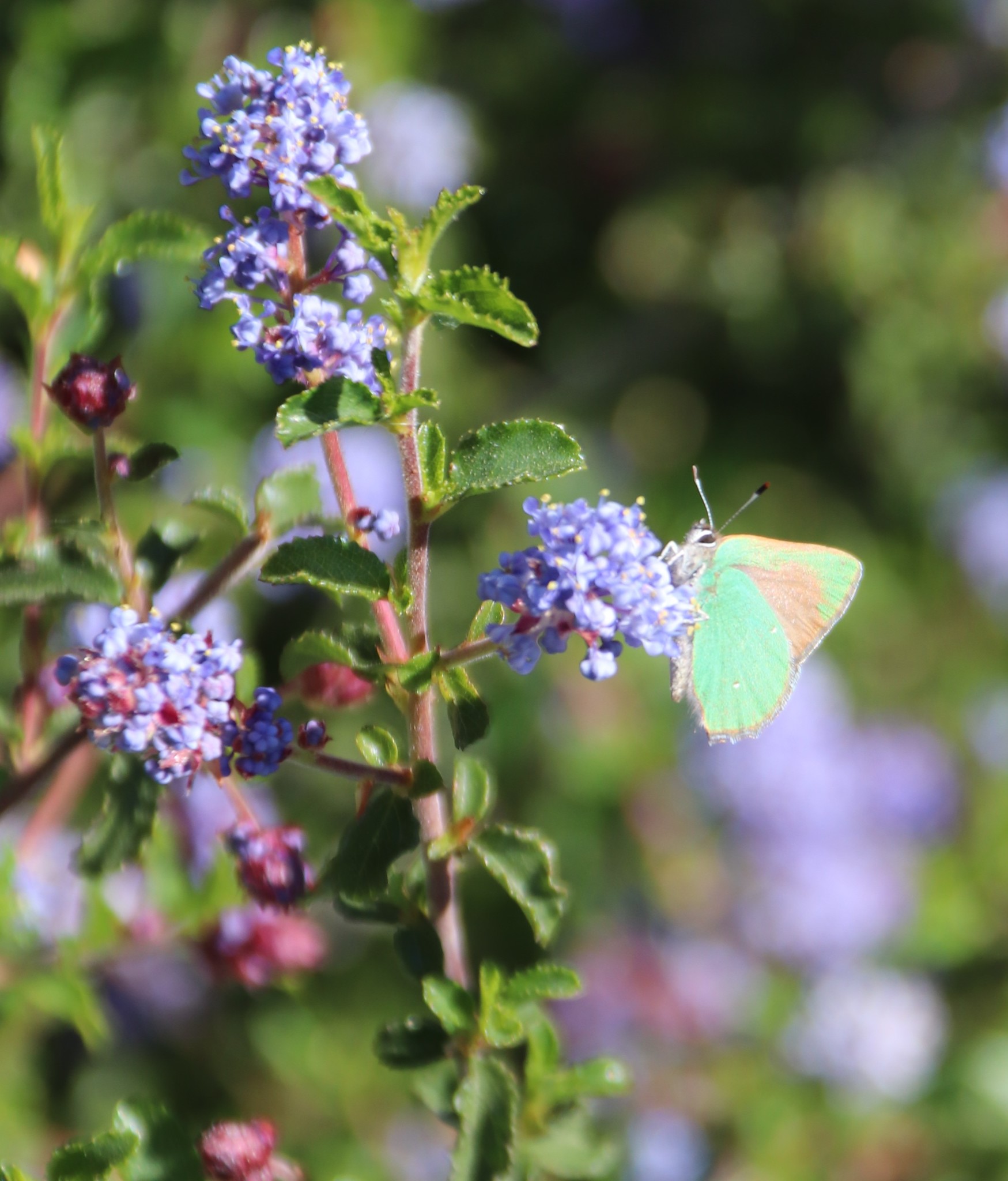 Callophrys dumetorum | species | Ceanothus | genus | eats | Animalia | Arthropoda | Insecta | Lepidoptera | Lycaenidae | Callophrys | Plantae | Tracheophyta | Magnoliopsida | Rosales | Rhamnaceae | Ceanothus | 38.560741 | -122.679761 | 2021 | 4 | 17 | http://creativecommons.org/licenses/by-nc/4.0/ | https://www.inaturalist.org/observations/74323844 | |