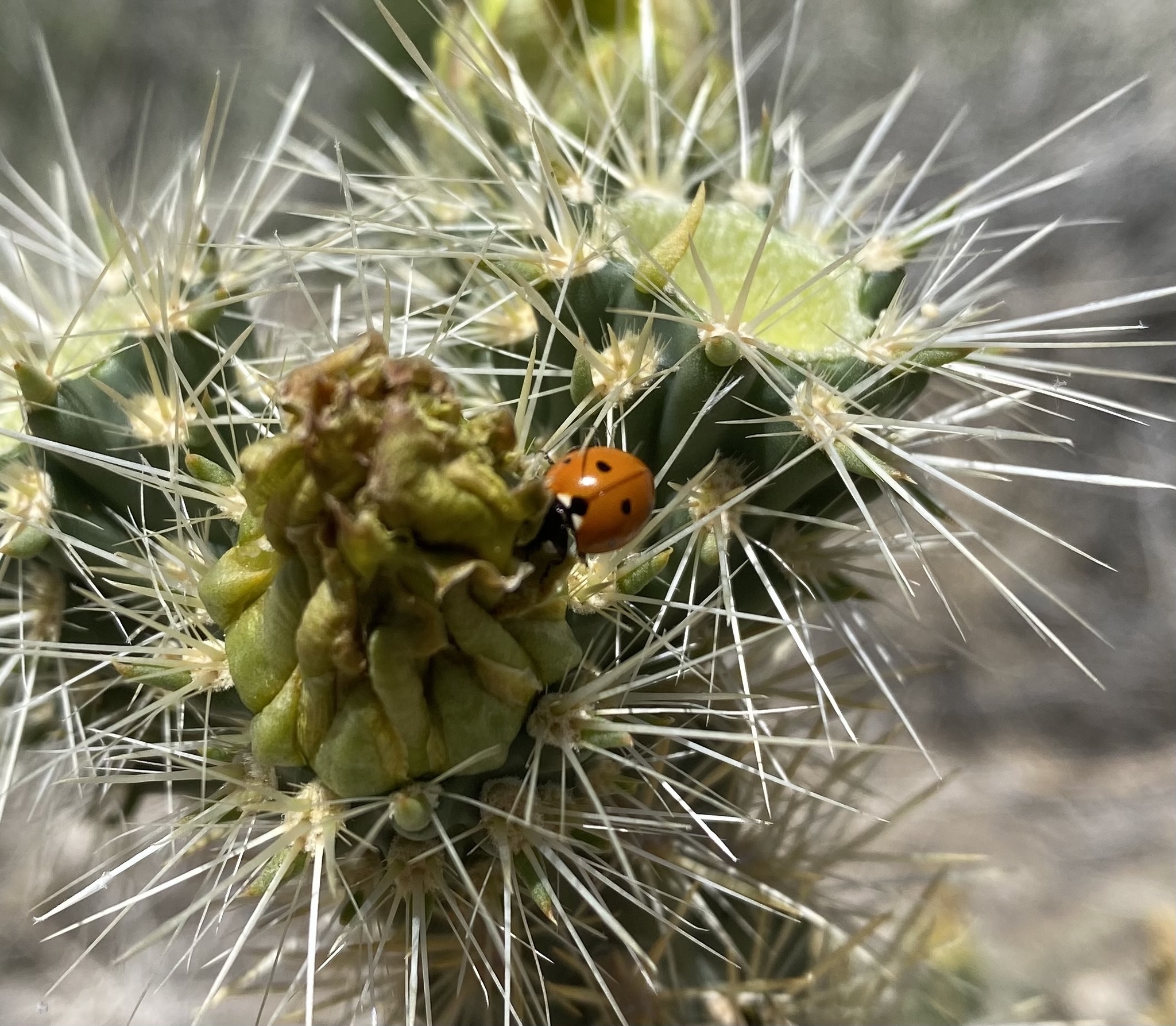 Coccinella septempunctata | species | Cylindropuntia | genus | visitsFlowersOf | Animalia | Arthropoda | Insecta | Coleoptera | Coccinellidae | Coccinella | Plantae | Tracheophyta | Magnoliopsida | Caryophyllales | Cactaceae | Cylindropuntia | 33.2783 | -116.429283 | 2021 | 4 | 17 | http://creativecommons.org/licenses/by-nc/4.0/ | https://www.inaturalist.org/observations/74341835 | |