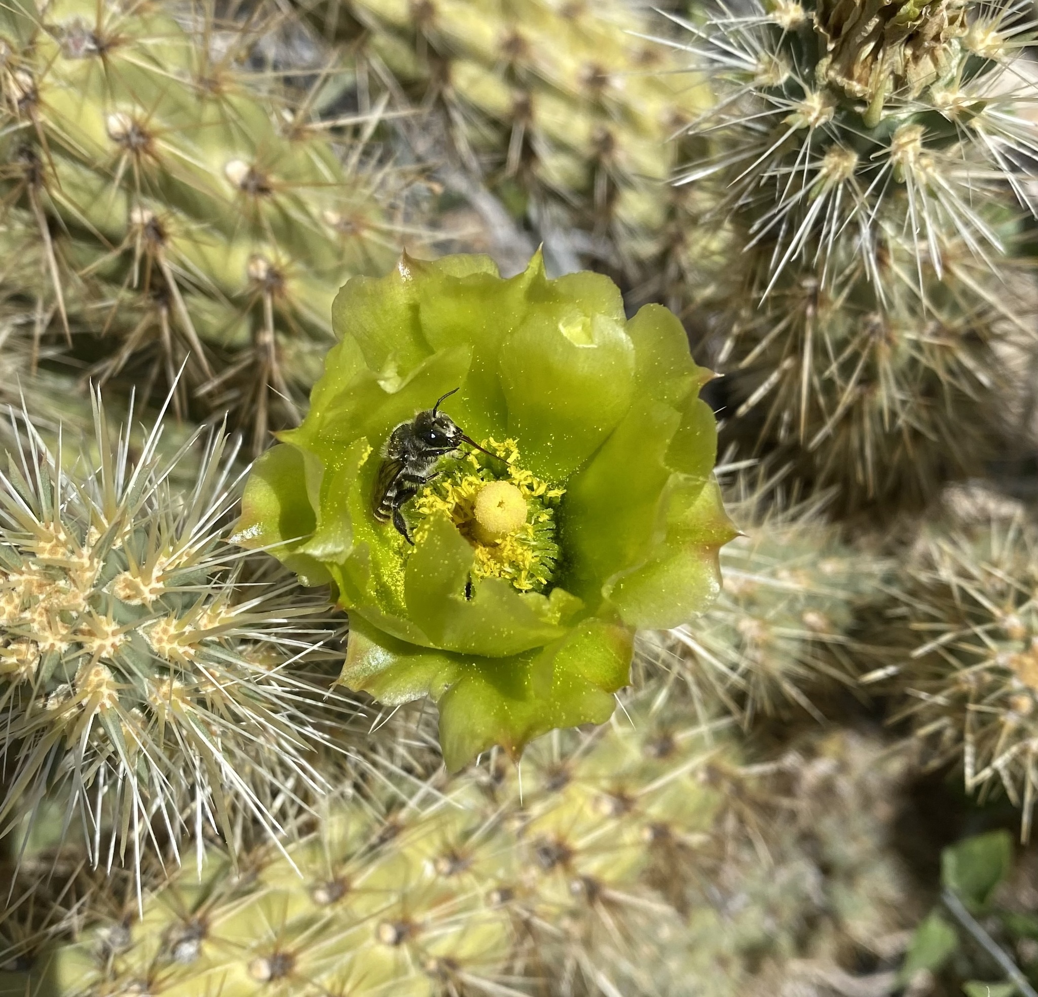 Lithurgopsis apicalis | species | Cylindropuntia ganderi | species | visitsFlowersOf | Animalia | Arthropoda | Insecta | Hymenoptera | Megachilidae | Lithurgopsis | Plantae | Tracheophyta | Magnoliopsida | Caryophyllales | Cactaceae | Cylindropuntia | 33.278137 | -116.429237 | 2021 | 4 | 17 | http://creativecommons.org/licenses/by-nc/4.0/ | https://www.inaturalist.org/observations/74341933 | |