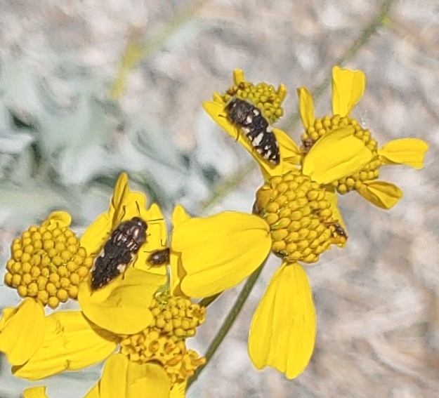 Acmaeodera vernalis | species | Encelia farinosa | species | visitsFlowersOf | Animalia | Arthropoda | Insecta | Coleoptera | Buprestidae | Acmaeodera | Plantae | Tracheophyta | Magnoliopsida | Asterales | Asteraceae | Encelia | 34.002011 | -116.613445 | 2021 | 4 | 16 | http://creativecommons.org/licenses/by/4.0/ | https://www.inaturalist.org/observations/74170578 | |