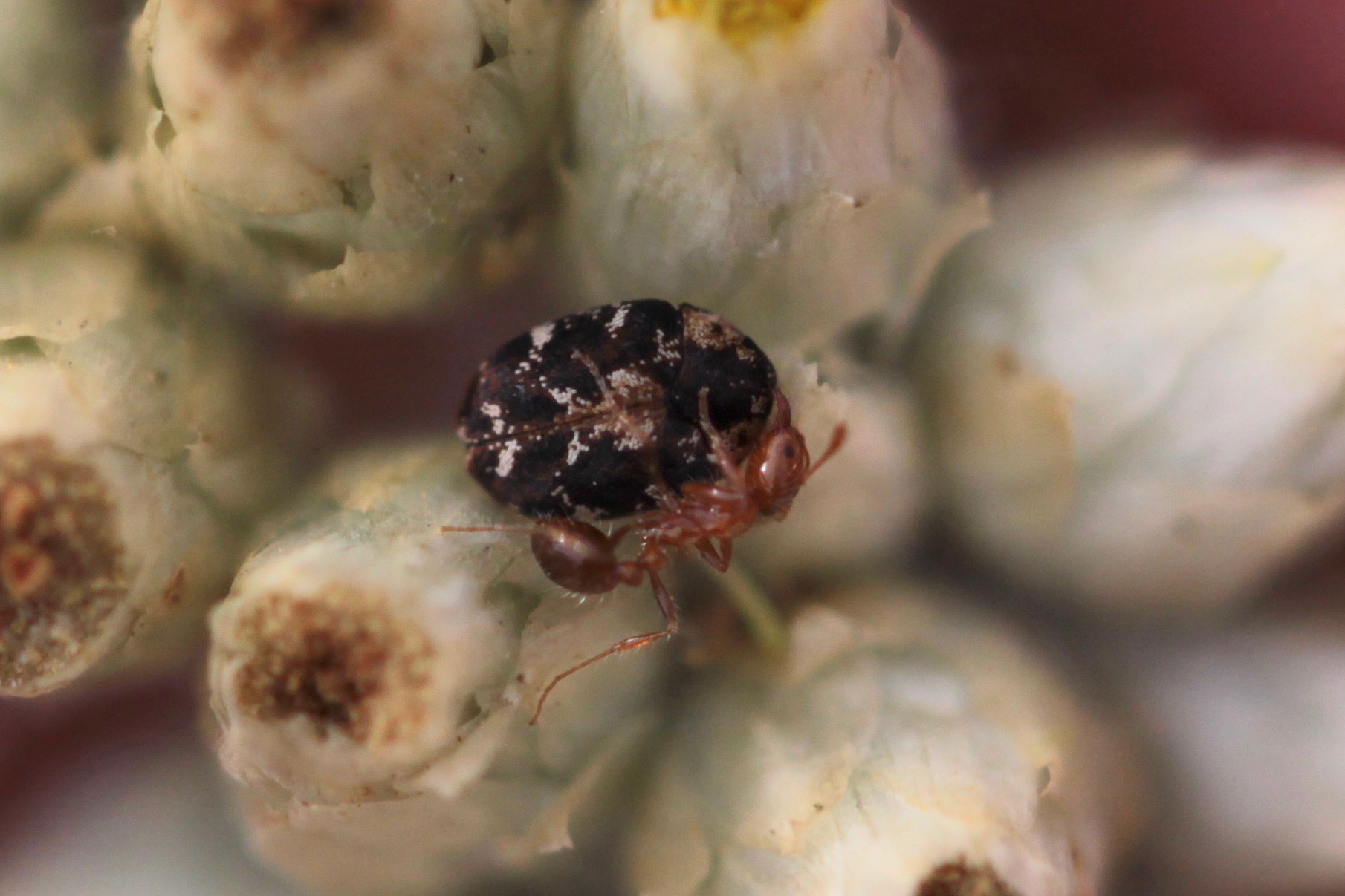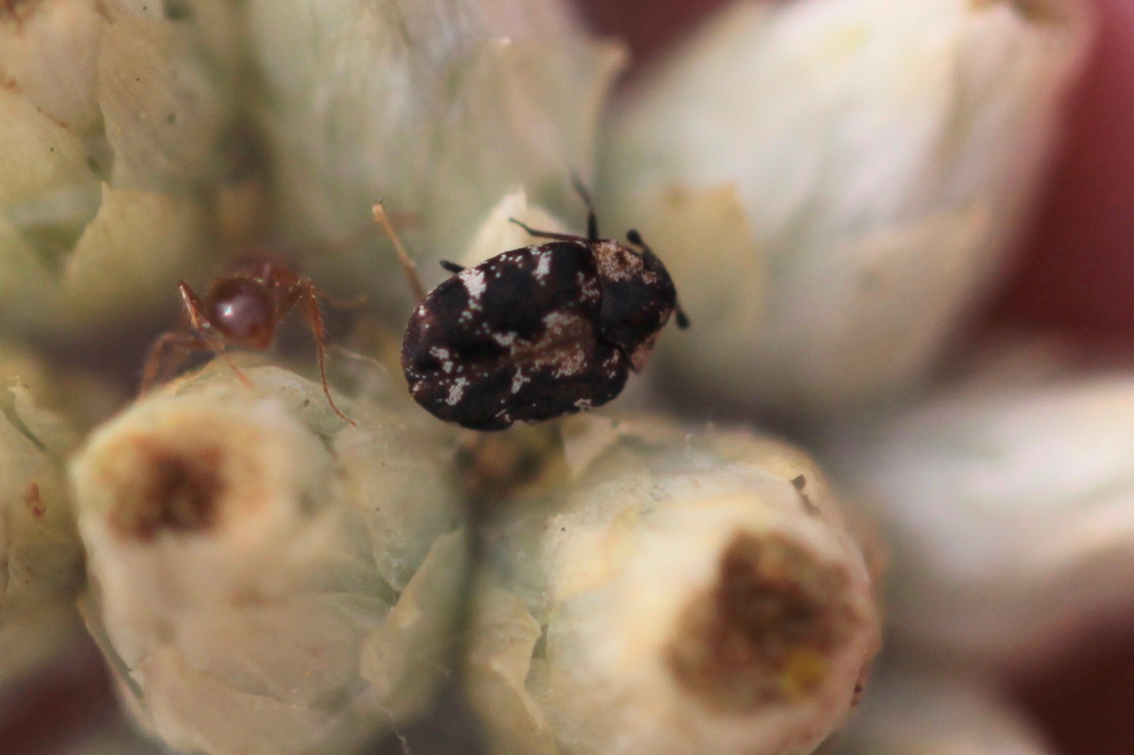 Anthrenus lepidus | species | Pseudognaphalium biolettii | species | visitsFlowersOf | Animalia | Arthropoda | Insecta | Coleoptera | Dermestidae | Anthrenus | Plantae | Tracheophyta | Magnoliopsida | Asterales | Asteraceae | Pseudognaphalium | 32.671504 | -117.241124 | 2021 | 4 | 14 | http://creativecommons.org/licenses/by-nc/4.0/ | https://www.inaturalist.org/observations/74039082 | |