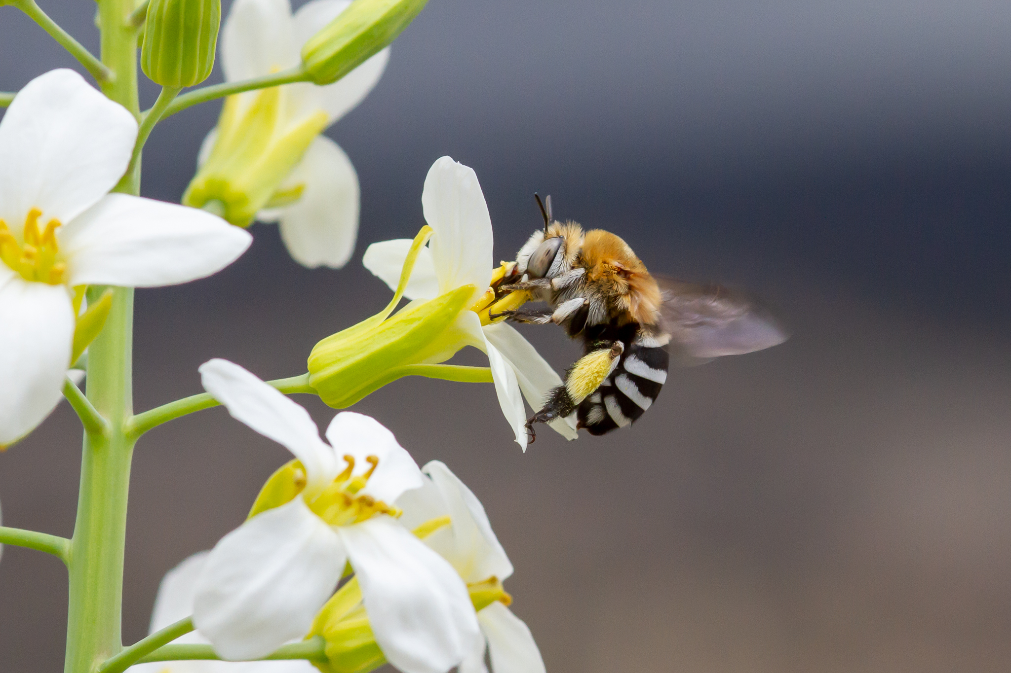 Amegilla quadrifasciata | species | Brassica oleracea | species | visitsFlowersOf | Animalia | Arthropoda | Insecta | Hymenoptera | Apidae | Amegilla | Plantae | Tracheophyta | Magnoliopsida | Brassicales | Brassicaceae | Brassica | 28.24705 | -16.434341 | 2021 | 4 | 15 | http://creativecommons.org/licenses/by-nc/4.0/ | https://www.inaturalist.org/observations/74066897 | |