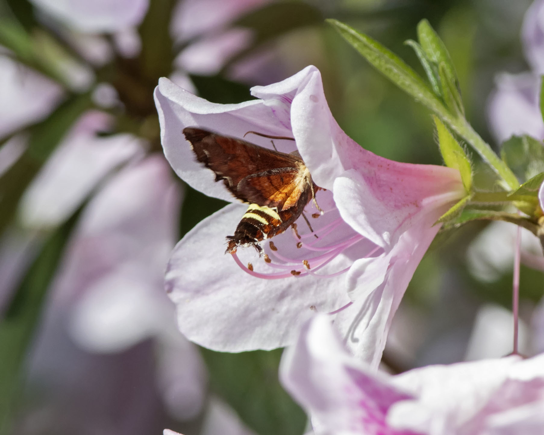 Amphion floridensis | species | Rhododendron | genus | visitsFlowersOf | Animalia | Arthropoda | Insecta | Lepidoptera | Sphingidae | Amphion | Plantae | Tracheophyta | Magnoliopsida | Ericales | Ericaceae | Rhododendron | 31.234555 | -89.233646 | 2021 | 3 | 29 | http://creativecommons.org/licenses/by-nc/4.0/ | https://www.inaturalist.org/observations/74093372 | |