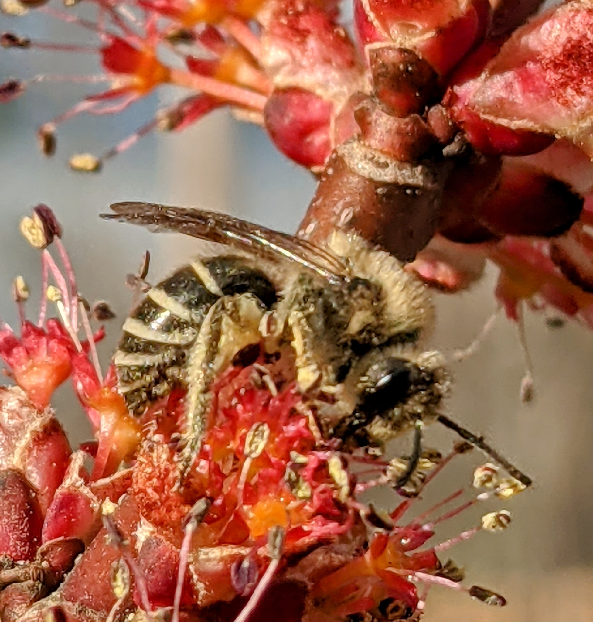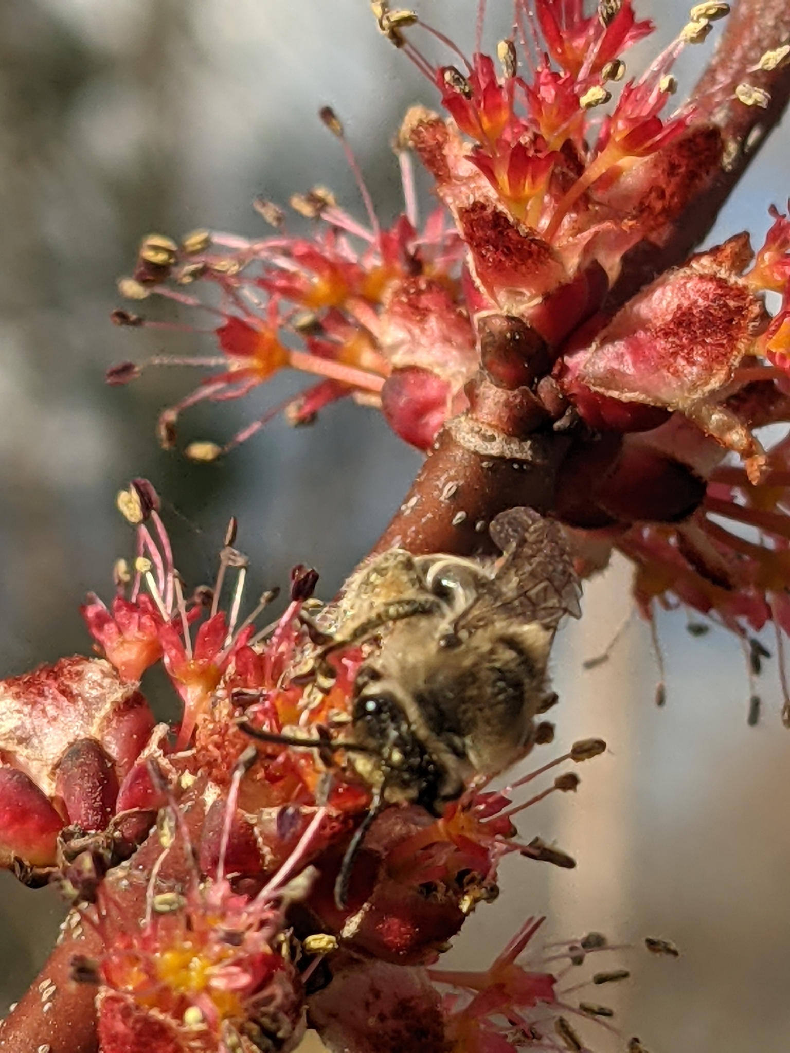 Colletes inaequalis | species | Acer rubrum | species | visitsFlowersOf | Animalia | Arthropoda | Insecta | Hymenoptera | Colletidae | Colletes | Plantae | Tracheophyta | Magnoliopsida | Sapindales | Sapindaceae | Acer | 43.655339 | -72.316547 | 2021 | 4 | 14 | http://creativecommons.org/licenses/by/4.0/ | https://www.inaturalist.org/observations/73981200 | |