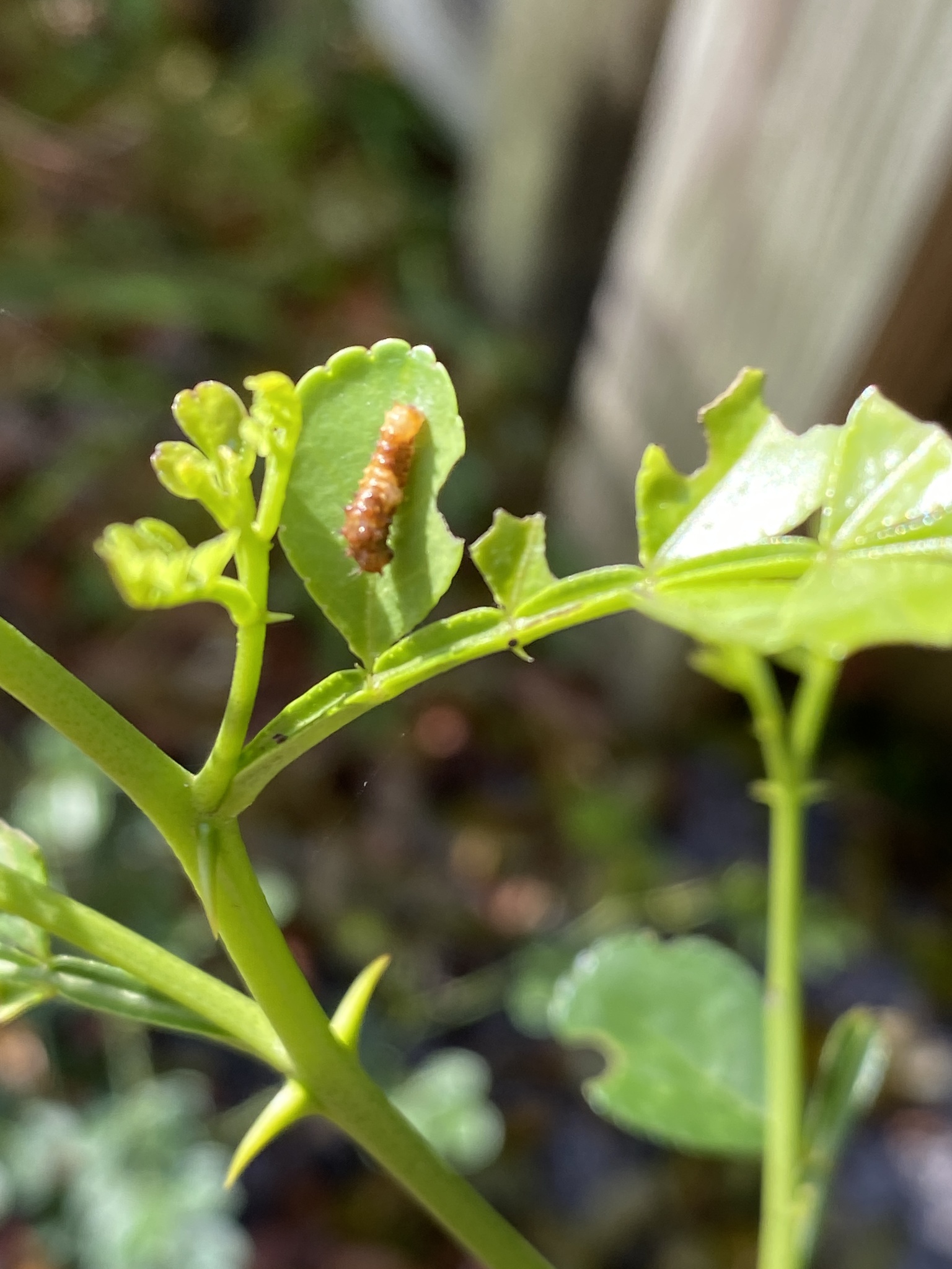 Papilio cresphontes | species | Zanthoxylum fagara | species | interactsWith | Animalia | Arthropoda | Insecta | Lepidoptera | Papilionidae | Papilio | Plantae | Tracheophyta | Magnoliopsida | Sapindales | Rutaceae | Zanthoxylum | 26.343529 | -80.115622 | 2021 | 4 | 14 | http://creativecommons.org/licenses/by-nc/4.0/ | https://www.inaturalist.org/observations/73982361 | |