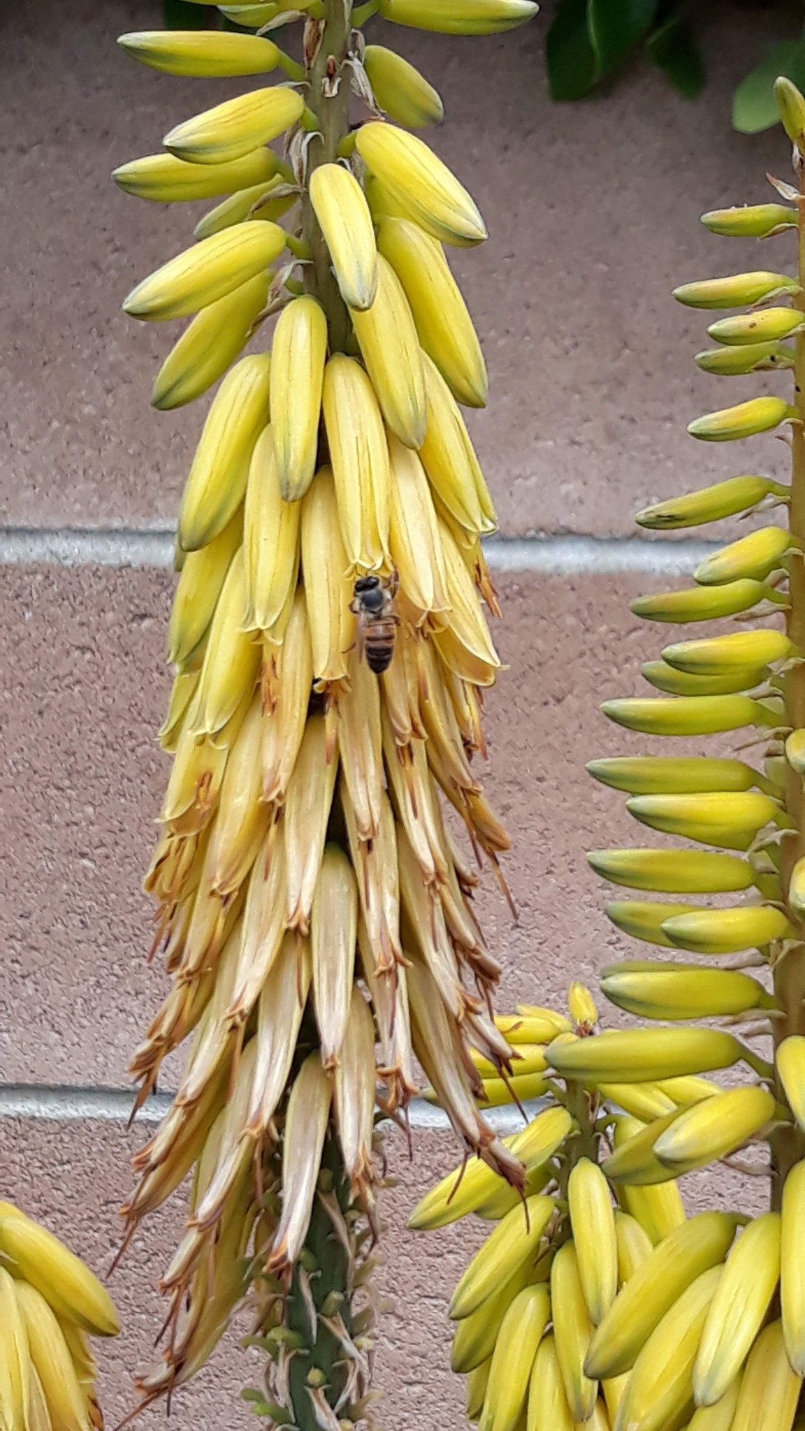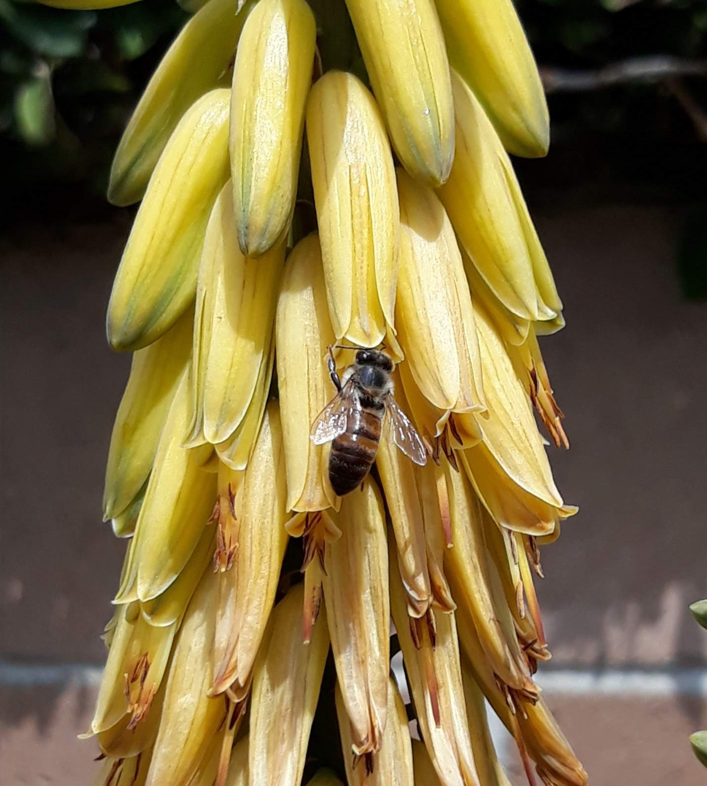 Apis mellifera | species | Aloe vera | species | hasHost | Animalia | Arthropoda | Insecta | Hymenoptera | Apidae | Apis | Plantae | Tracheophyta | Liliopsida | Asparagales | Asphodelaceae | Aloe | 34.227617 | -118.442425 | 2021 | 4 | 14 | http://creativecommons.org/licenses/by-nc/4.0/ | https://www.inaturalist.org/observations/73989241 | |