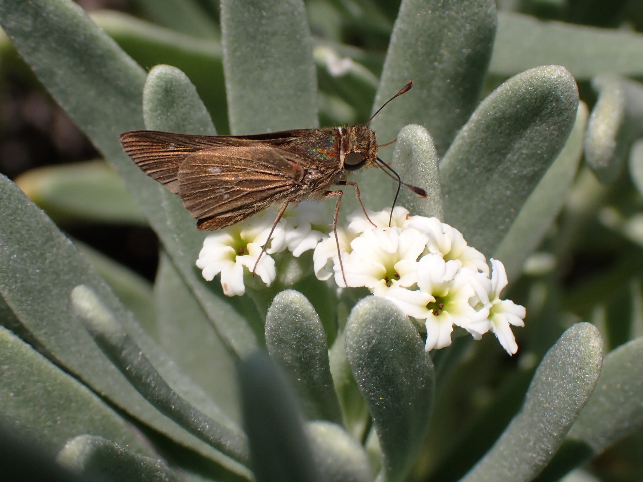 Panoquina panoquinoides | species | Tournefortia gnaphalodes | species | visitsFlowersOf | Animalia | Arthropoda | Insecta | Lepidoptera | Hesperiidae | Panoquina | Plantae | Tracheophyta | Magnoliopsida | Boraginales | Heliotropiaceae | Tournefortia | 24.633463 | -81.361447 | 2021 | 4 | 14 | http://creativecommons.org/licenses/by-nc/4.0/ | https://www.inaturalist.org/observations/73987391 | |