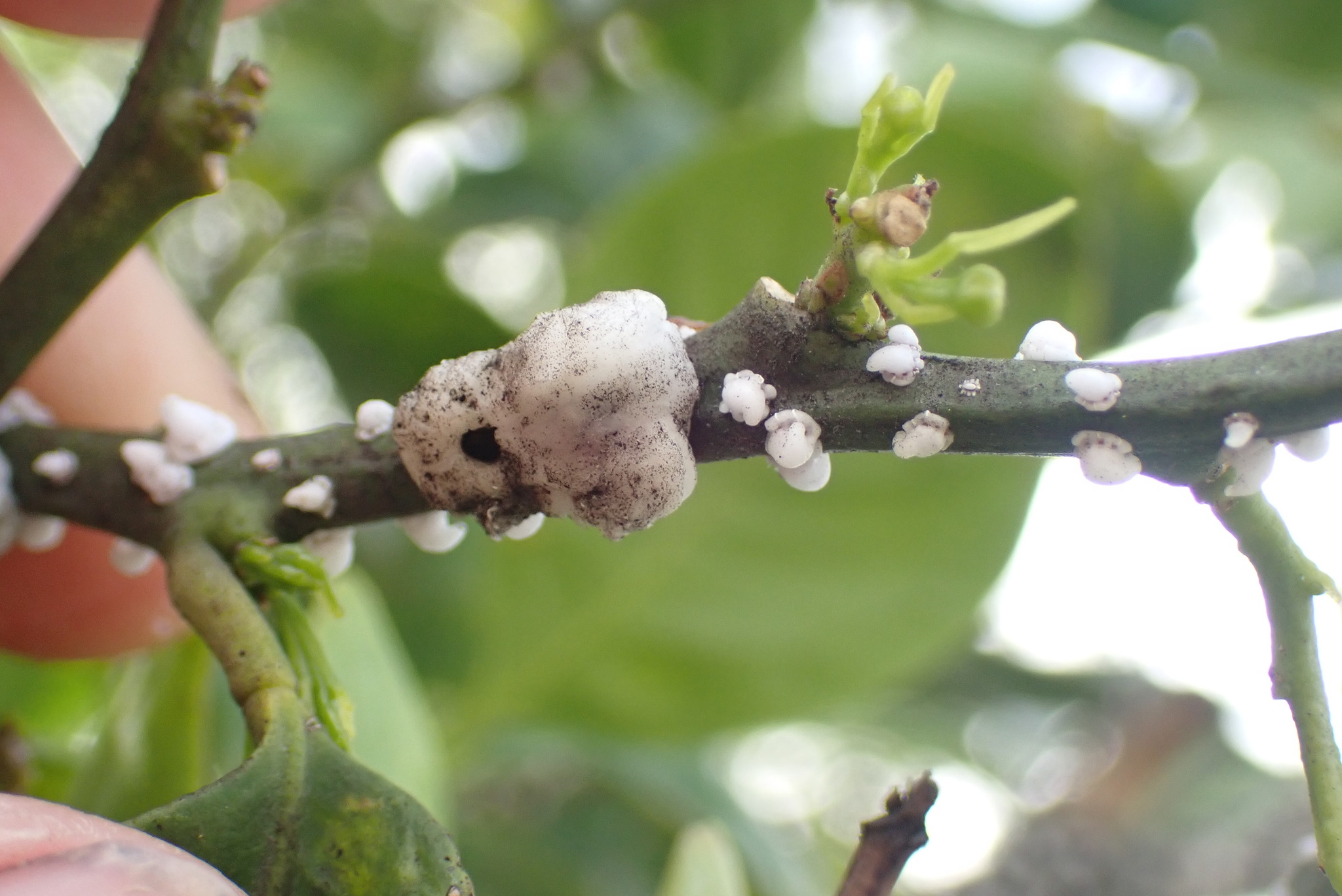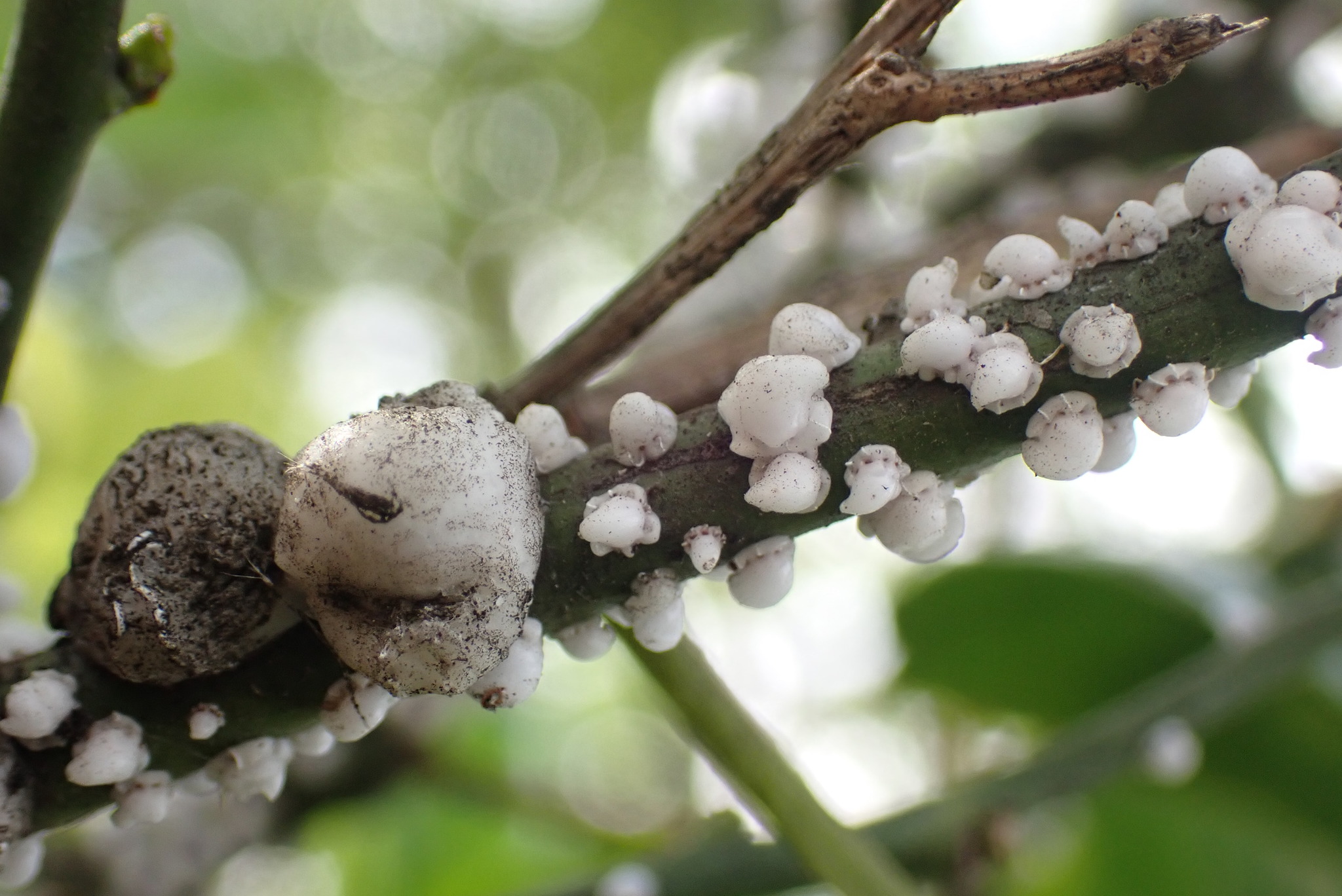 Ceroplastes destructor | species | Citrus | genus | interactsWith | Animalia | Arthropoda | Insecta | Hemiptera | Coccidae | Ceroplastes | Plantae | Tracheophyta | Magnoliopsida | Sapindales | Rutaceae | Citrus | -37.706823 | 176.307372 | 2021 | 3 | 7 | http://creativecommons.org/licenses/by-nc/4.0/ | https://www.inaturalist.org/observations/73915729 | |