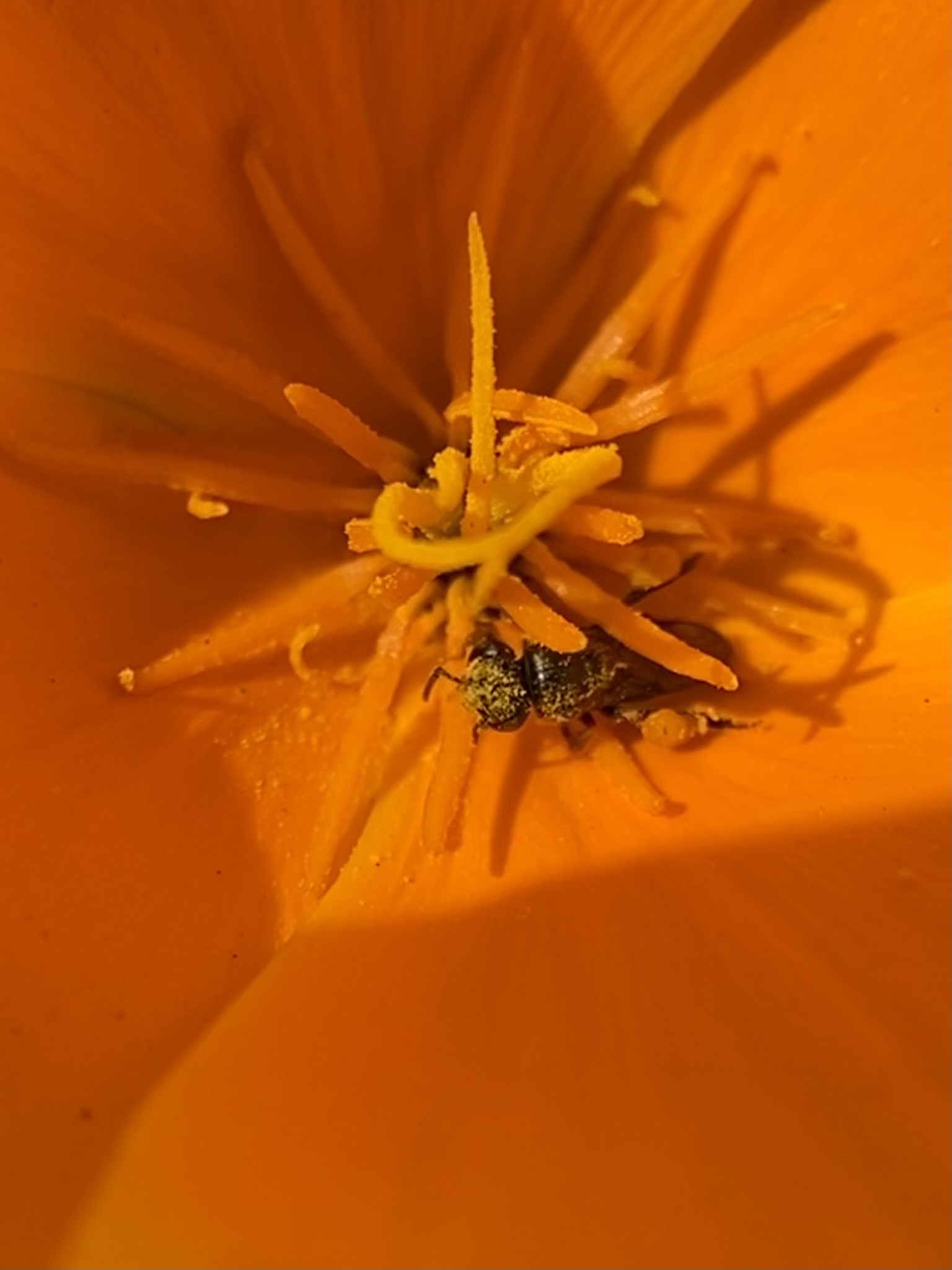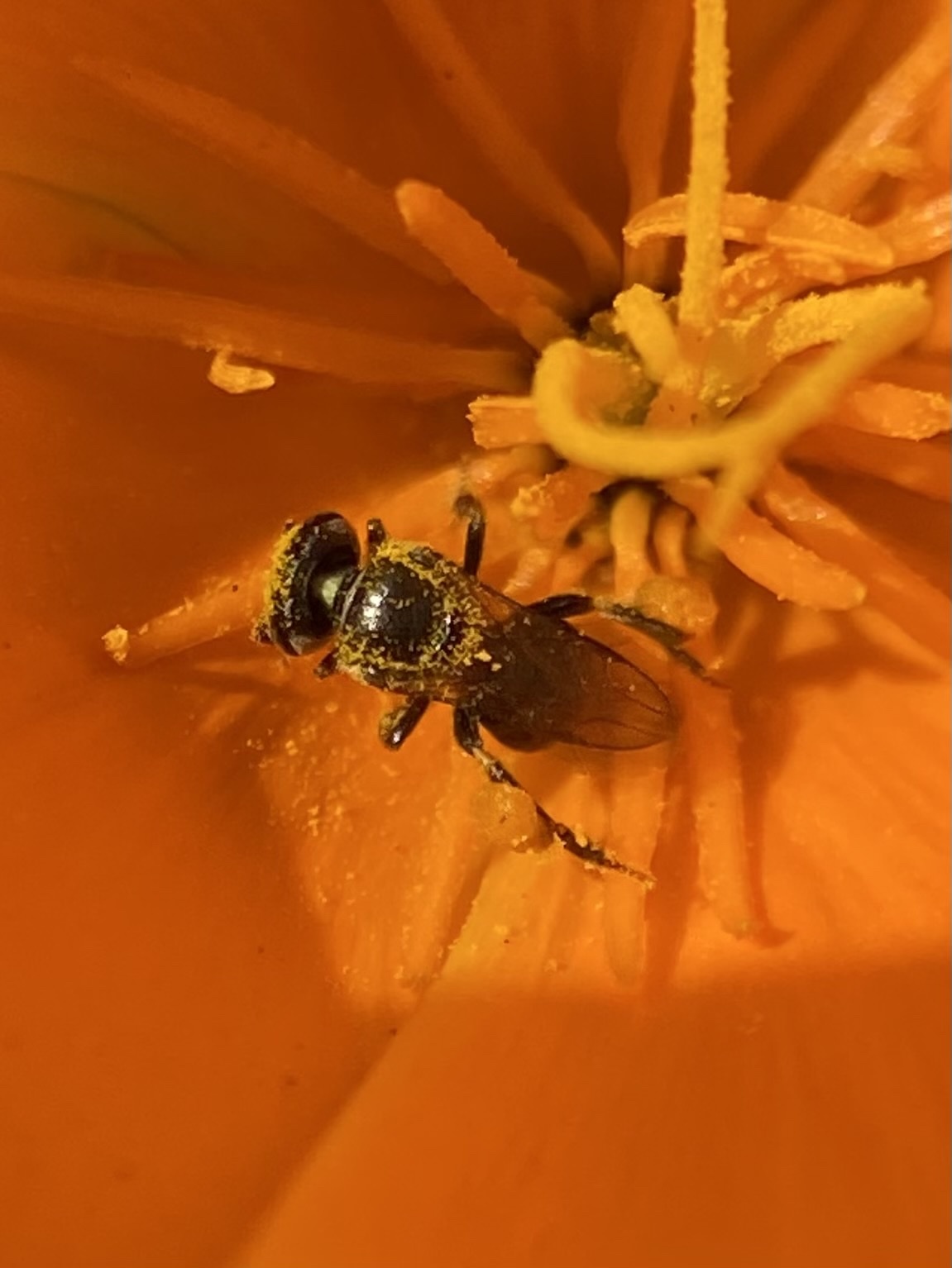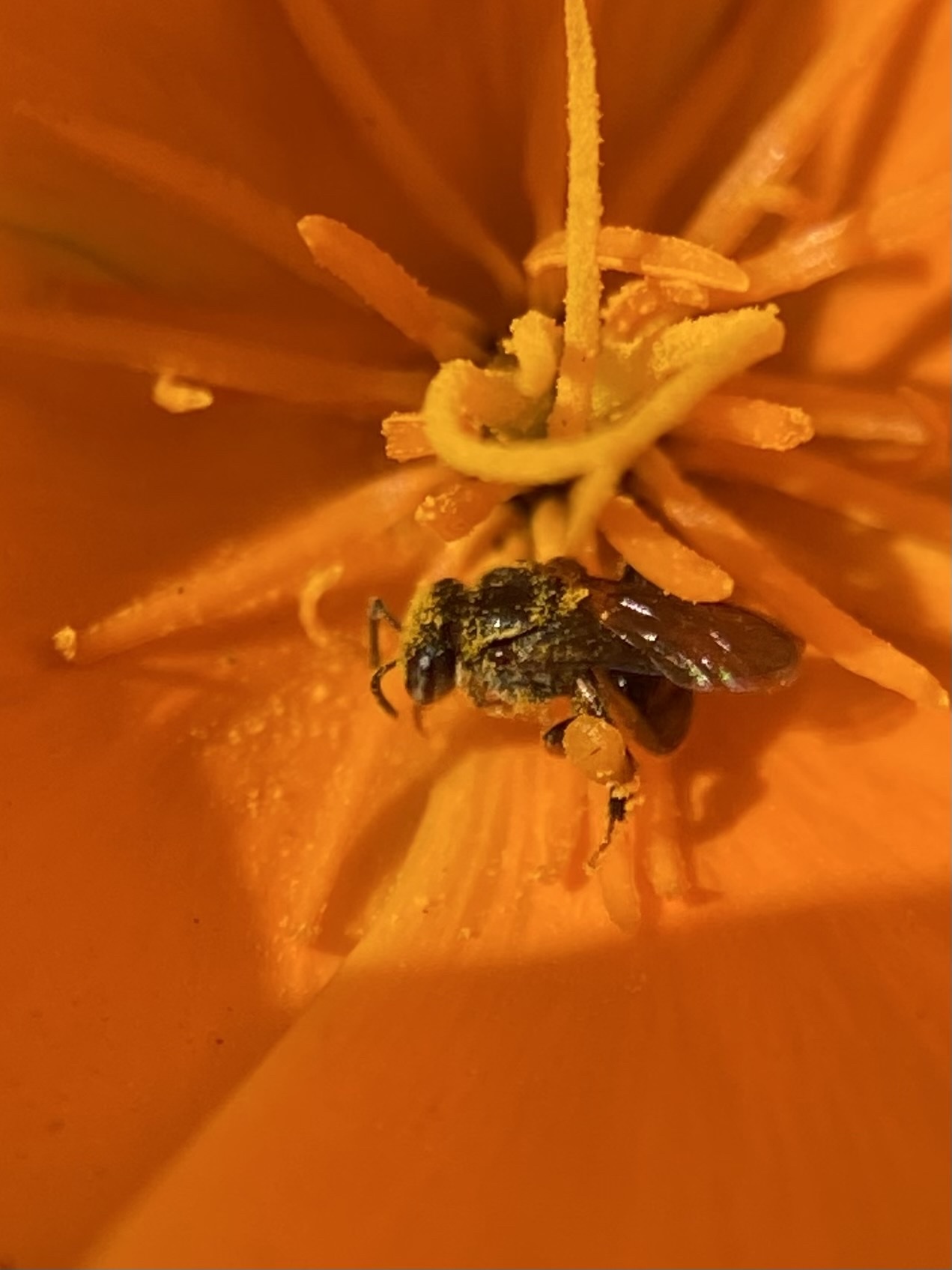 Plebeia emerina | species | Eschscholzia californica | species | eats | Animalia | Arthropoda | Insecta | Hymenoptera | Apidae | Plebeia | Plantae | Tracheophyta | Magnoliopsida | Ranunculales | Papaveraceae | Eschscholzia | 37.440313 | -122.148439 | 2021 | 4 | 12 | http://creativecommons.org/licenses/by-nc/4.0/ | https://www.inaturalist.org/observations/73819549 | |