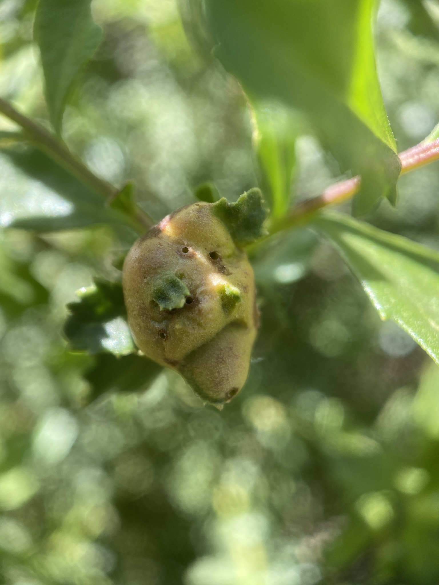Rhopalomyia californica | species | Baccharis pilularis | species | interactsWith | Animalia | Arthropoda | Insecta | Diptera | Cecidomyiidae | Rhopalomyia | Plantae | Tracheophyta | Magnoliopsida | Asterales | Asteraceae | Baccharis | 37.194288 | -121.833442 | 2021 | 4 | 11 | http://creativecommons.org/licenses/by-nc/4.0/ | https://www.inaturalist.org/observations/73810095 | |