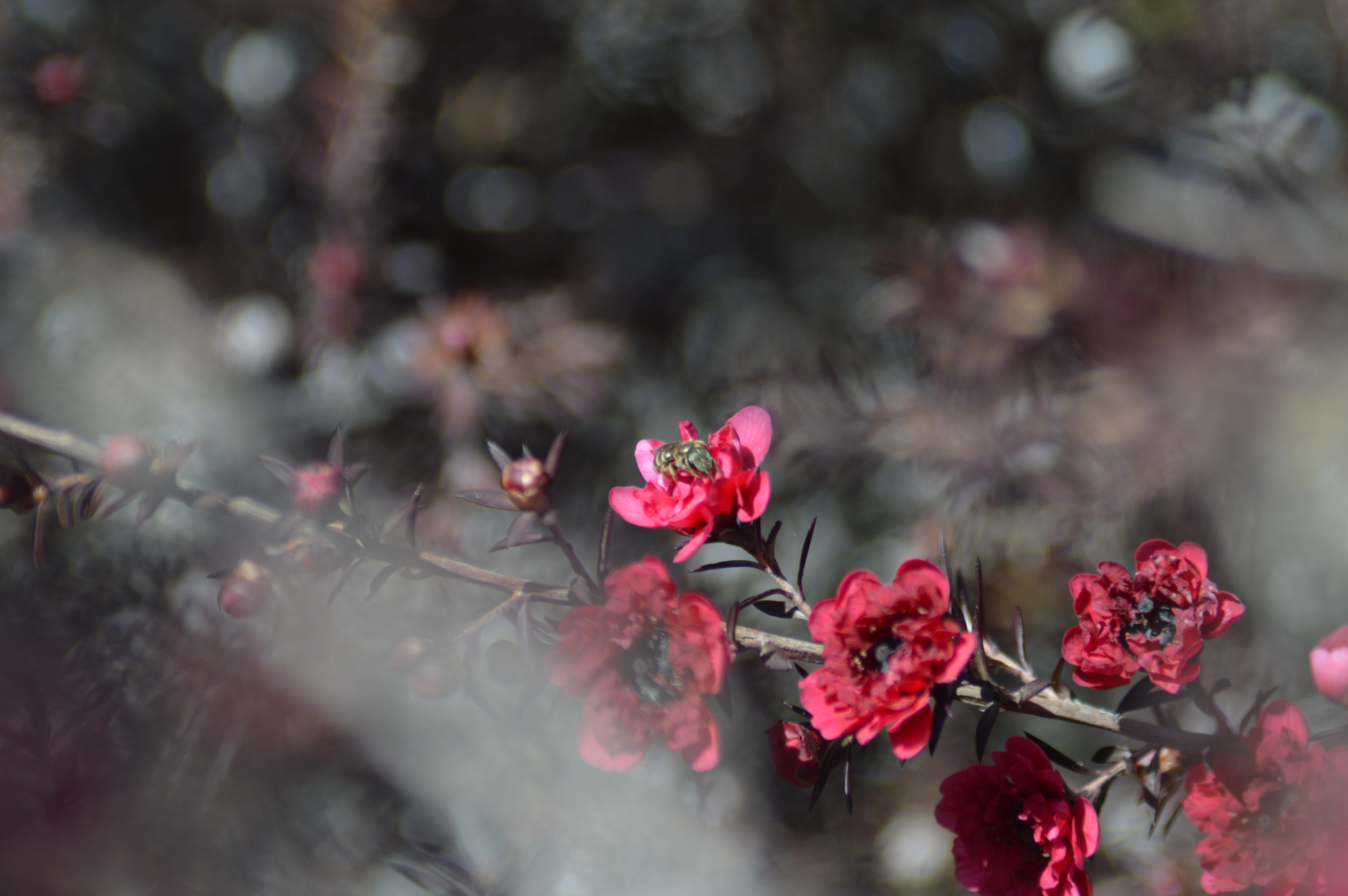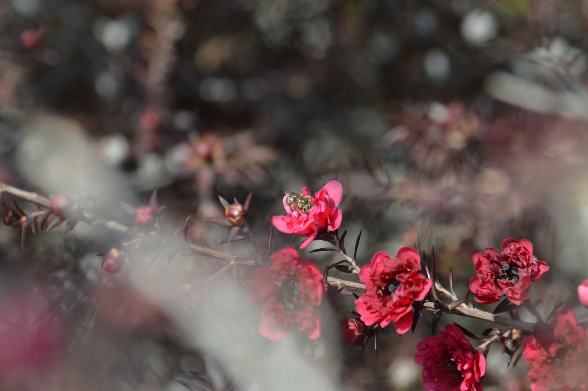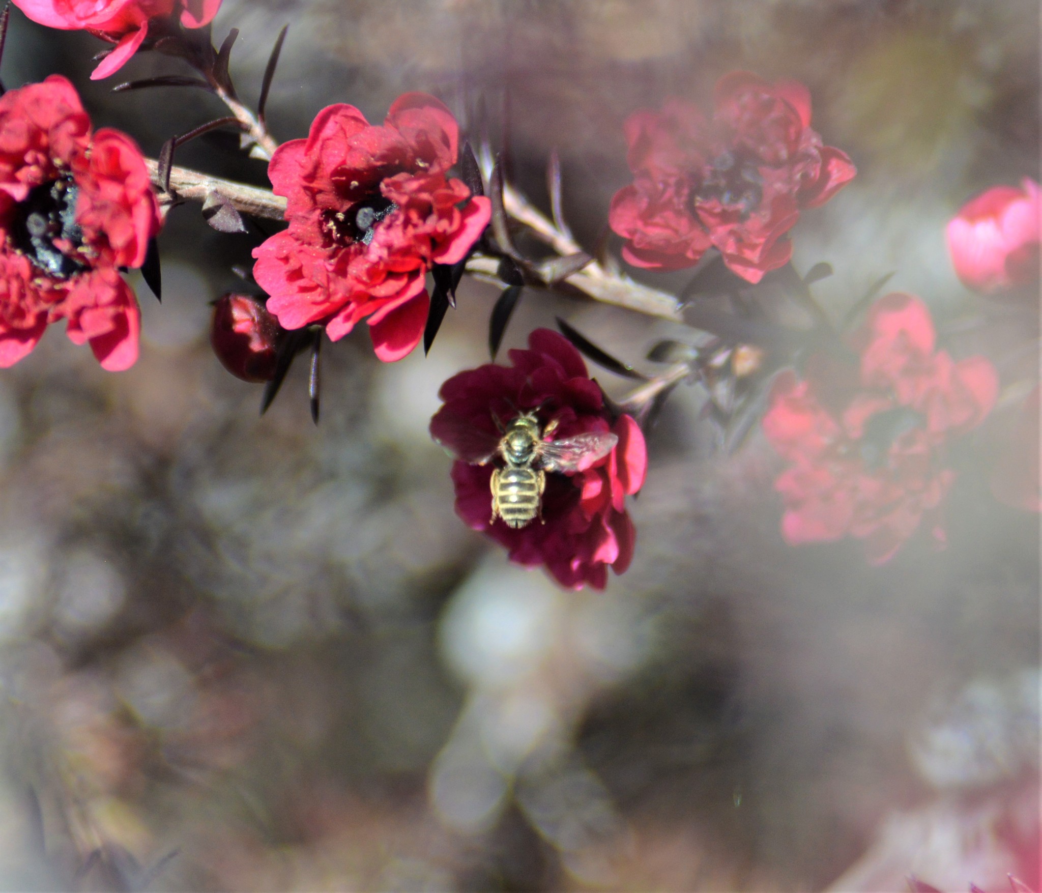 Halictus tripartitus | species | Leptospermum scoparium | species | eats | Animalia | Arthropoda | Insecta | Hymenoptera | Halictidae | Halictus | Plantae | Tracheophyta | Magnoliopsida | Myrtales | Myrtaceae | Leptospermum | 37.983696 | -122.048941 | 2021 | 4 | 1 | http://creativecommons.org/licenses/by-nc/4.0/ | https://www.inaturalist.org/observations/73584194 | |