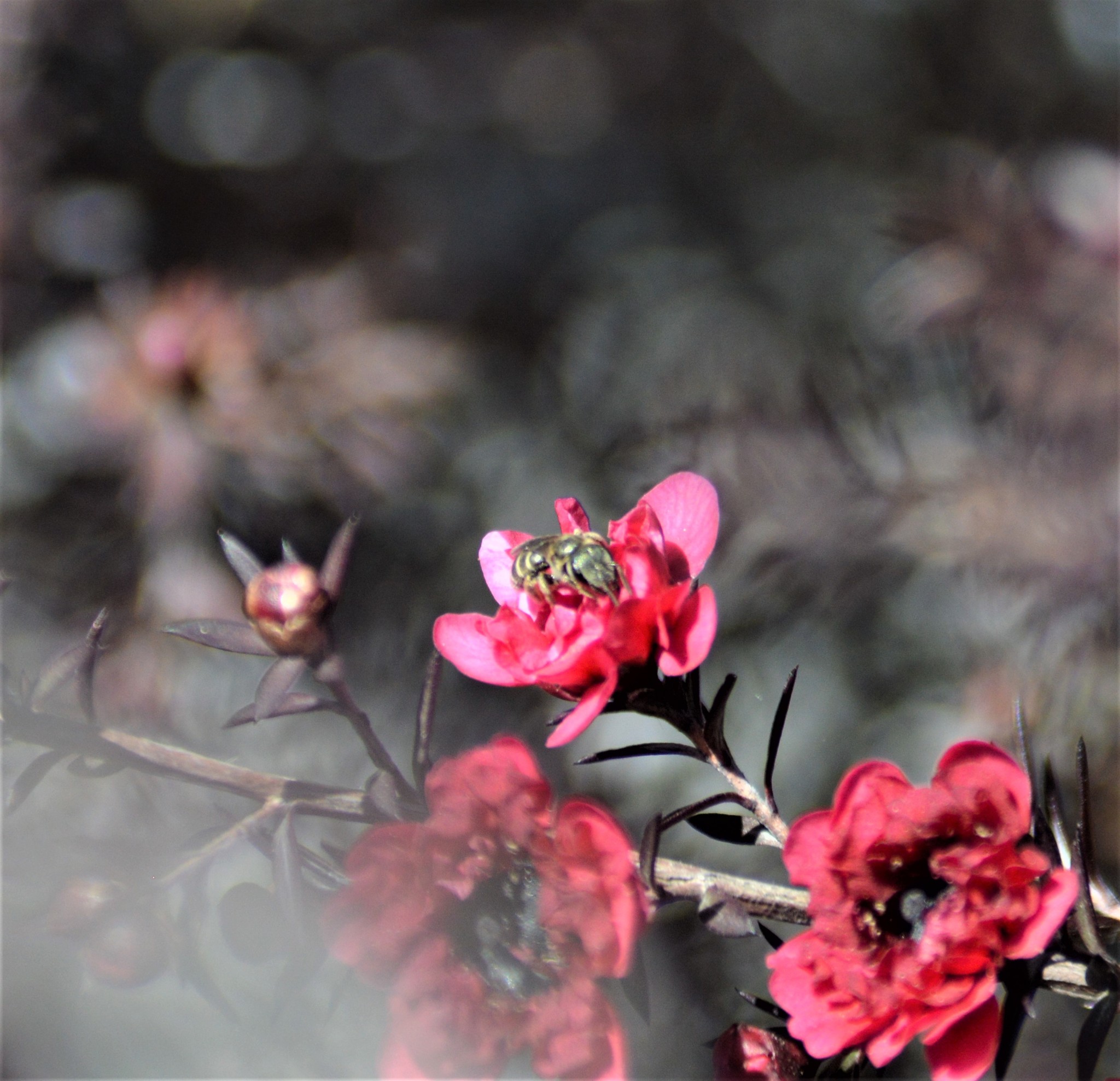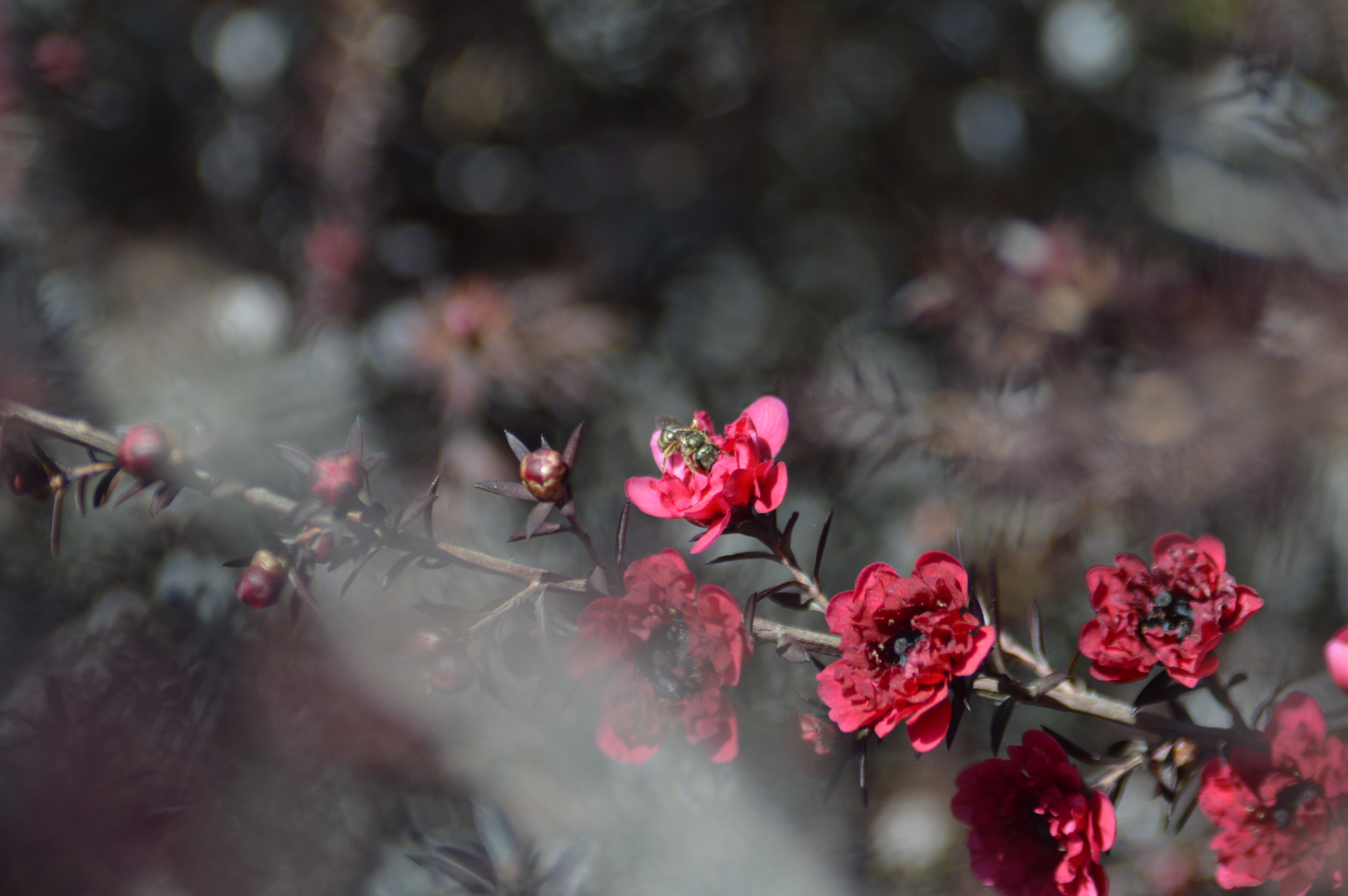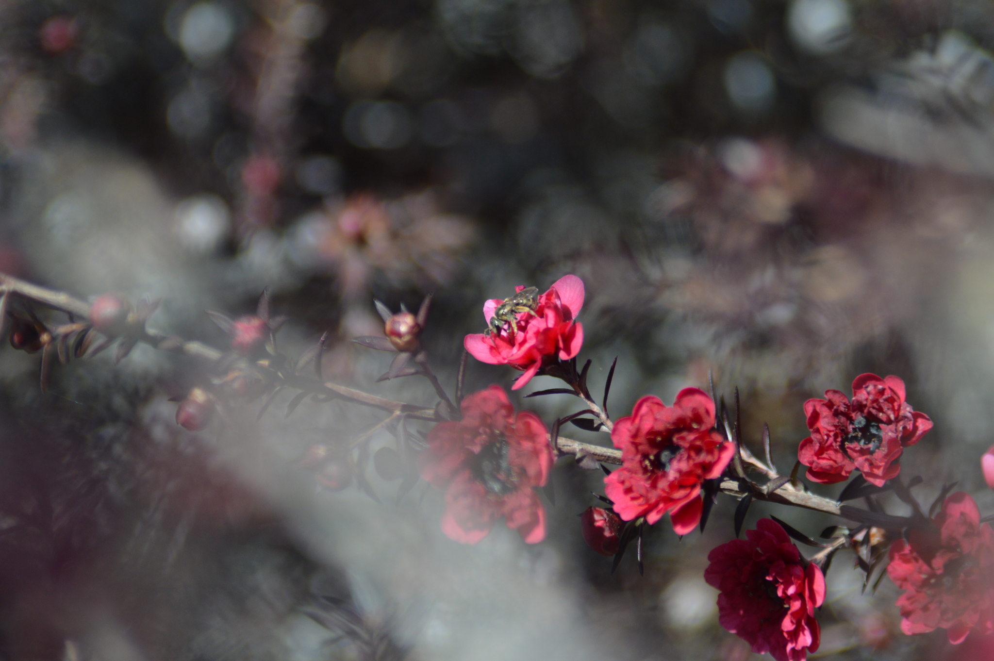 Halictus tripartitus | species | Leptospermum scoparium | species | eats | Animalia | Arthropoda | Insecta | Hymenoptera | Halictidae | Halictus | Plantae | Tracheophyta | Magnoliopsida | Myrtales | Myrtaceae | Leptospermum | 37.983696 | -122.048941 | 2021 | 4 | 1 | http://creativecommons.org/licenses/by-nc/4.0/ | https://www.inaturalist.org/observations/73584194 | |