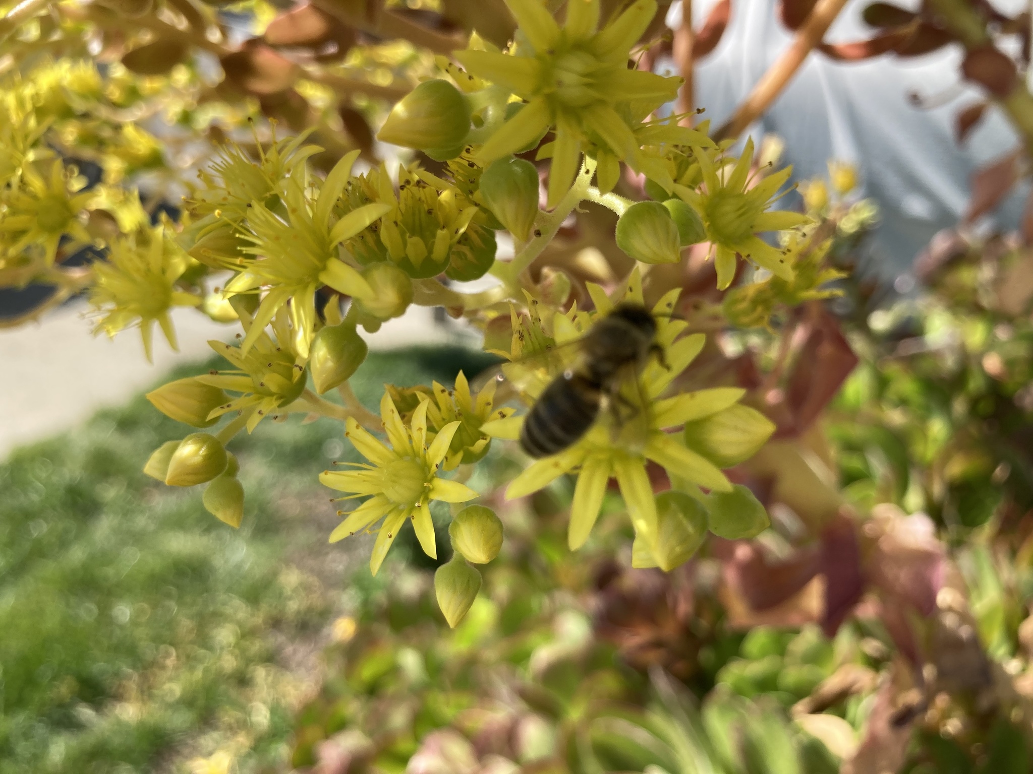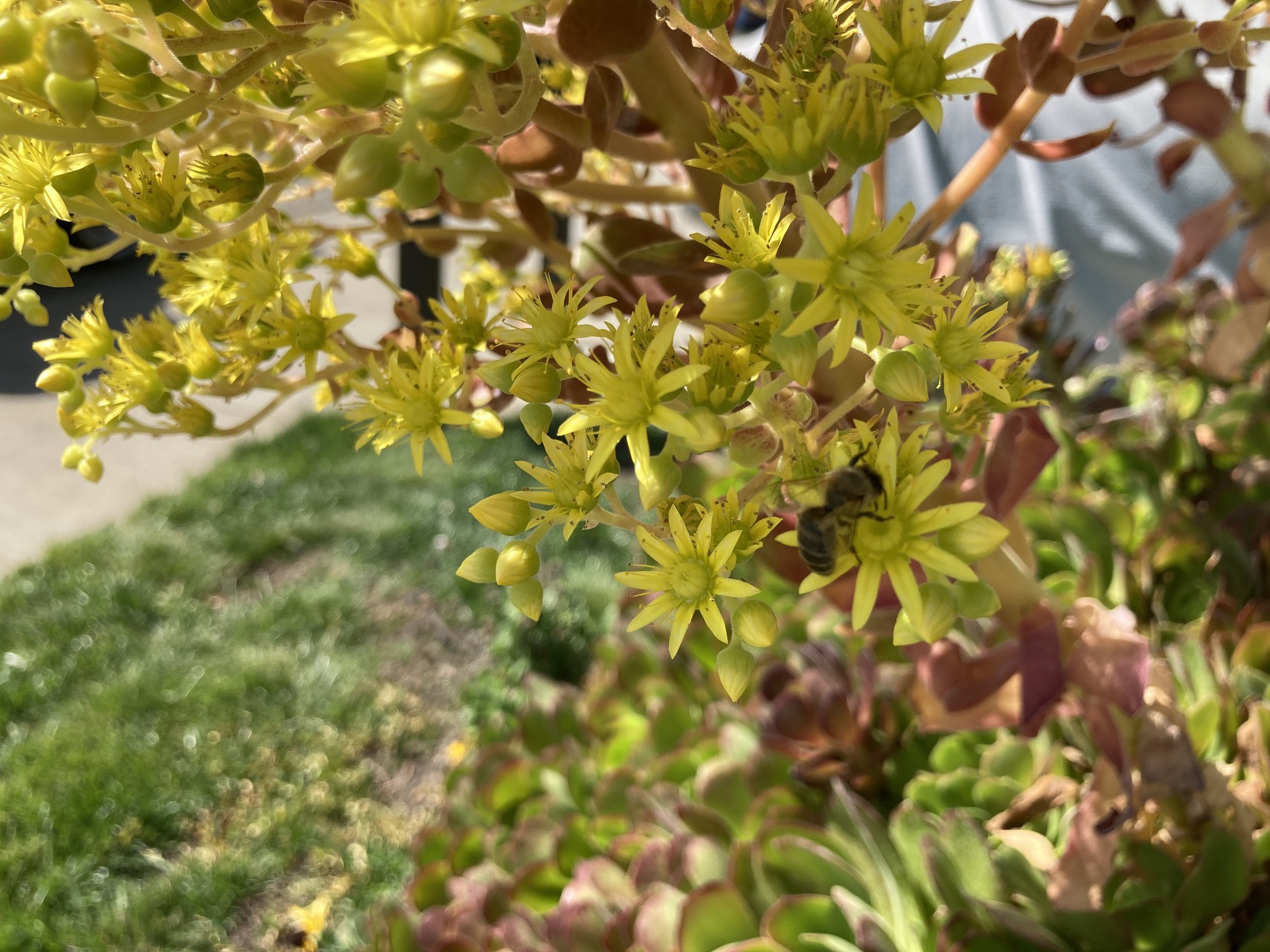 Apis mellifera | species | Aeonium arboreum | species | eats | Animalia | Arthropoda | Insecta | Hymenoptera | Apidae | Apis | Plantae | Tracheophyta | Magnoliopsida | Saxifragales | Crassulaceae | Aeonium | 38.251583 | -121.982895 | 2021 | 4 | 10 | http://creativecommons.org/licenses/by-nc/4.0/ | https://www.inaturalist.org/observations/73550425 | |