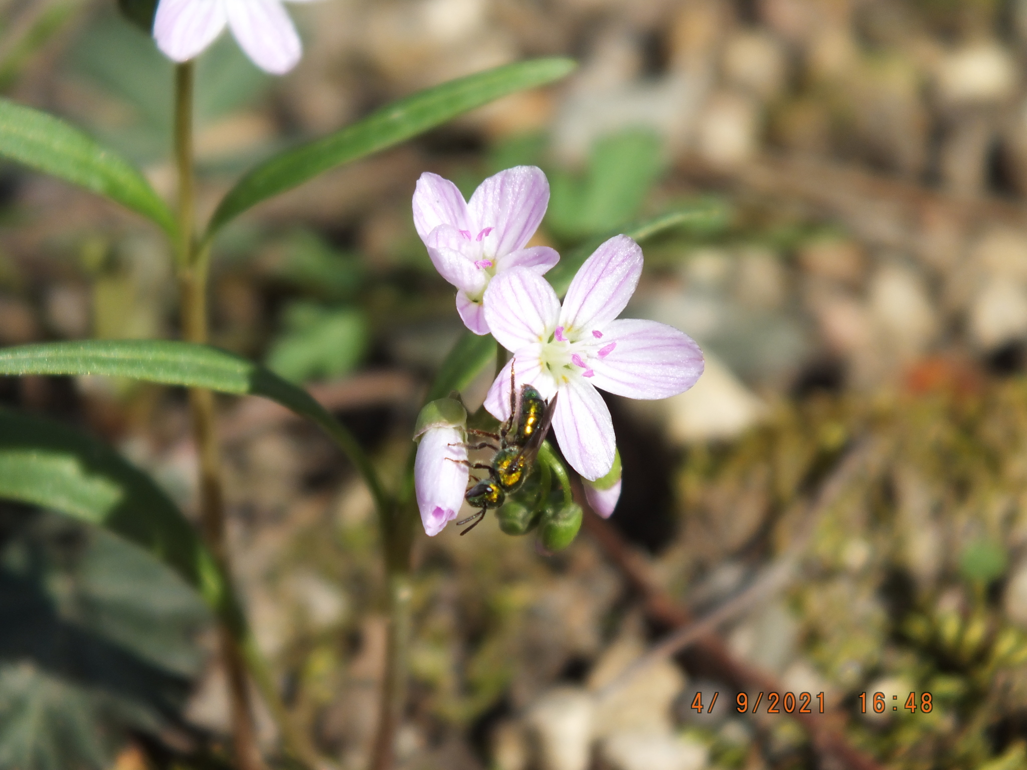 Augochlora pura | species | Claytonia virginica | species | visitsFlowersOf | Animalia | Arthropoda | Insecta | Hymenoptera | Halictidae | Augochlora | Plantae | Tracheophyta | Magnoliopsida | Caryophyllales | Montiaceae | Claytonia | 39.886743 | -86.145848 | 2021 | 4 | 9 | http://creativecommons.org/licenses/by-nc/4.0/ | https://www.inaturalist.org/observations/73554440 | |