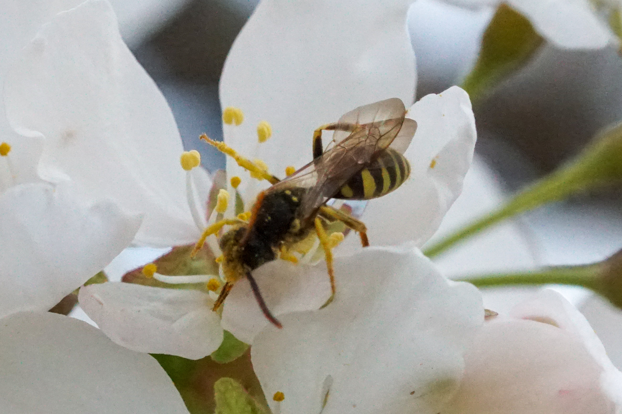Nomada | genus | Prunus | genus | eats | Animalia | Arthropoda | Insecta | Hymenoptera | Apidae | Nomada | Plantae | Tracheophyta | Magnoliopsida | Rosales | Rosaceae | Prunus | 41.016342 | -81.940475 | 2021 | 4 | 7 | http://creativecommons.org/licenses/by/4.0/ | https://www.inaturalist.org/observations/73554713 | |