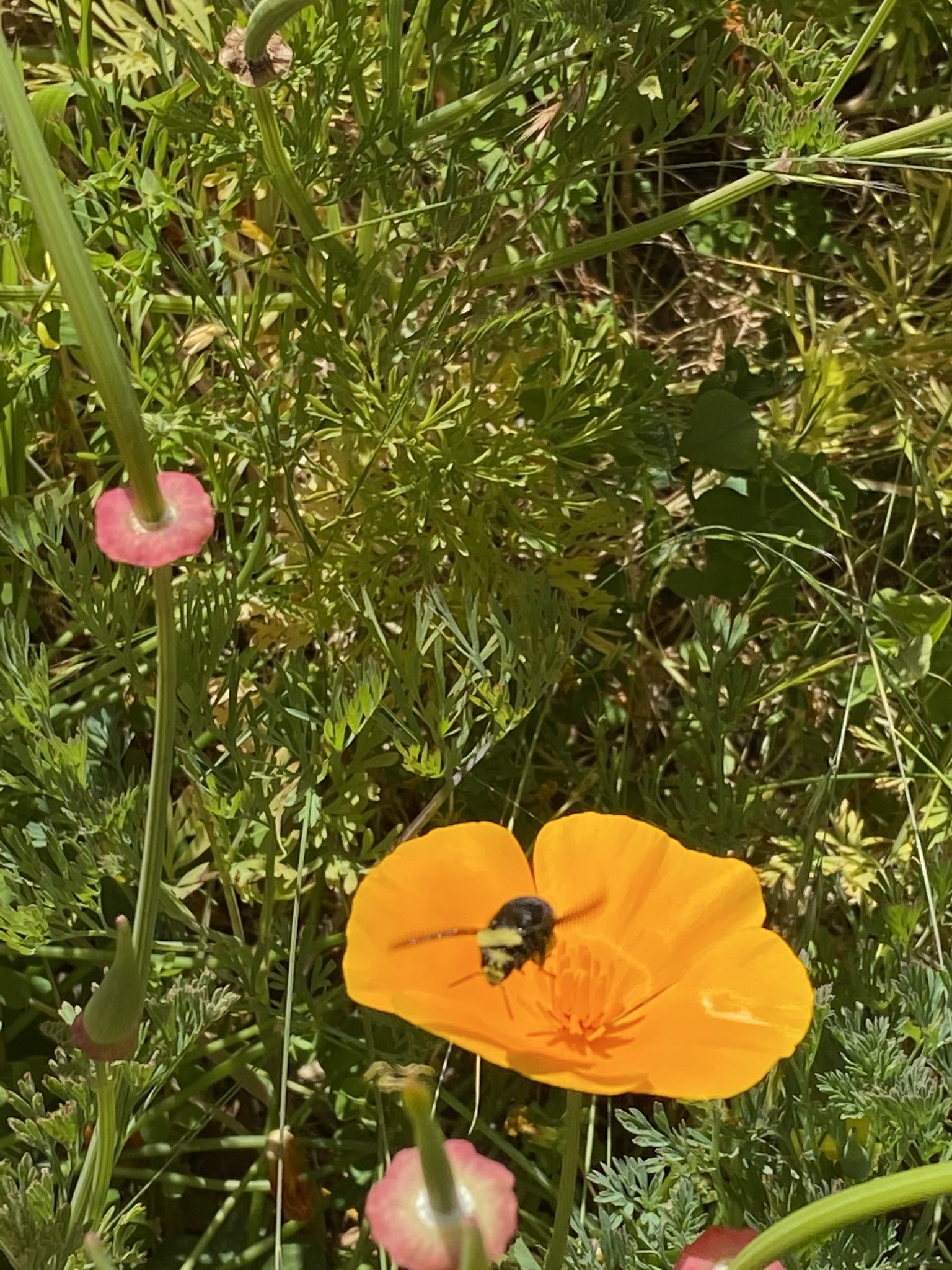 Bombus vosnesenskii | species | Eschscholzia californica | species | eats | Animalia | Arthropoda | Insecta | Hymenoptera | Apidae | Bombus | Plantae | Tracheophyta | Magnoliopsida | Ranunculales | Papaveraceae | Eschscholzia | 37.614103 | -122.037003 | 2021 | 4 | 10 | http://creativecommons.org/licenses/by-nc/4.0/ | https://www.inaturalist.org/observations/73538114 | |