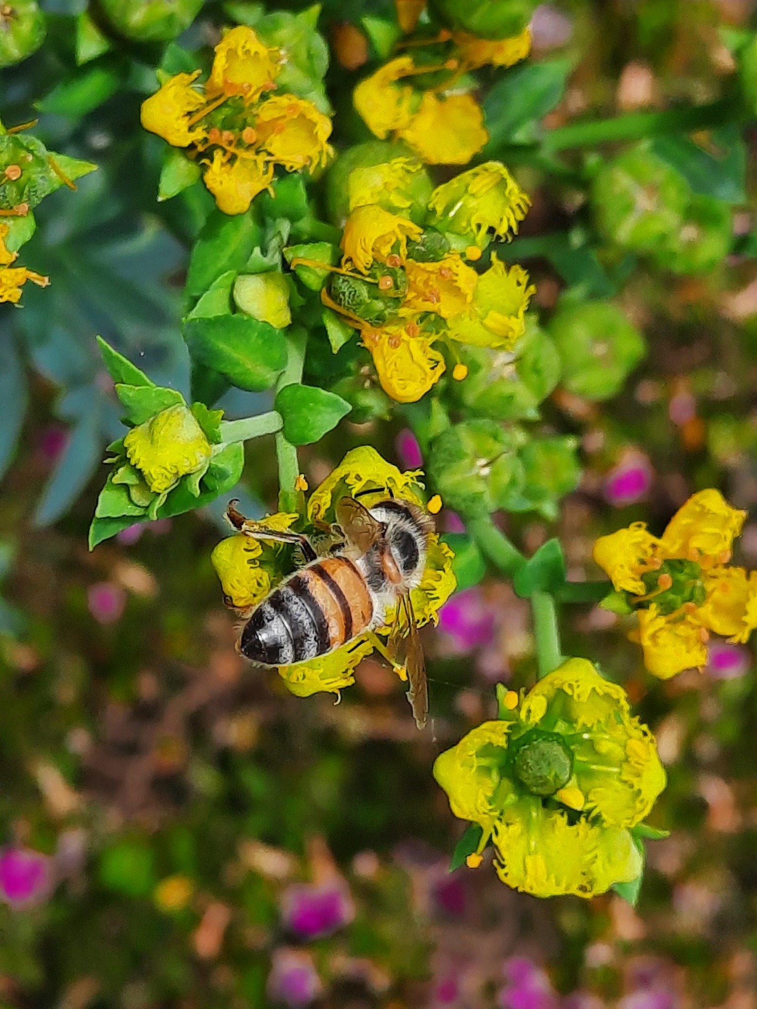 Apis mellifera | species | Ruta graveolens | species | visitsFlowersOf | Animalia | Arthropoda | Insecta | Hymenoptera | Apidae | Apis | Plantae | Tracheophyta | Magnoliopsida | Sapindales | Rutaceae | Ruta | -0.221471 | -78.375268 | 2021 | 4 | 8 | http://creativecommons.org/licenses/by-nc/4.0/ | https://www.inaturalist.org/observations/73370145 | |