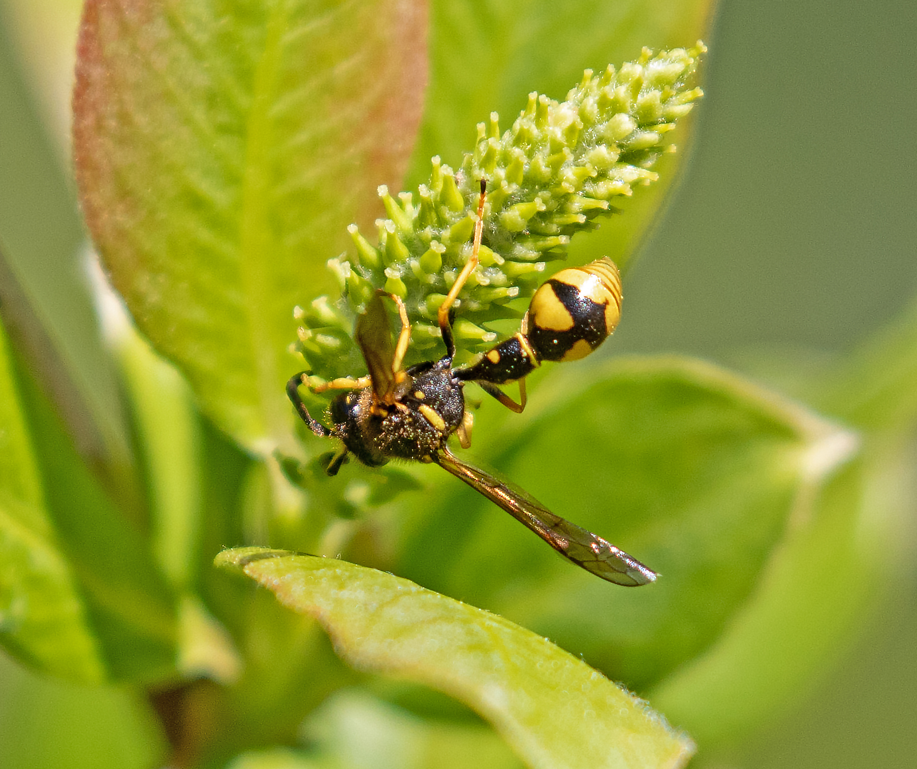 Eumenes crucifera | species | Salix | genus | eats | Animalia | Arthropoda | Insecta | Hymenoptera | Vespidae | Eumenes | Plantae | Tracheophyta | Magnoliopsida | Malpighiales | Salicaceae | Salix | 37.314768 | -122.062113 | 2021 | 4 | 5 | http://creativecommons.org/licenses/by-nc/4.0/ | https://www.inaturalist.org/observations/73420365 | |