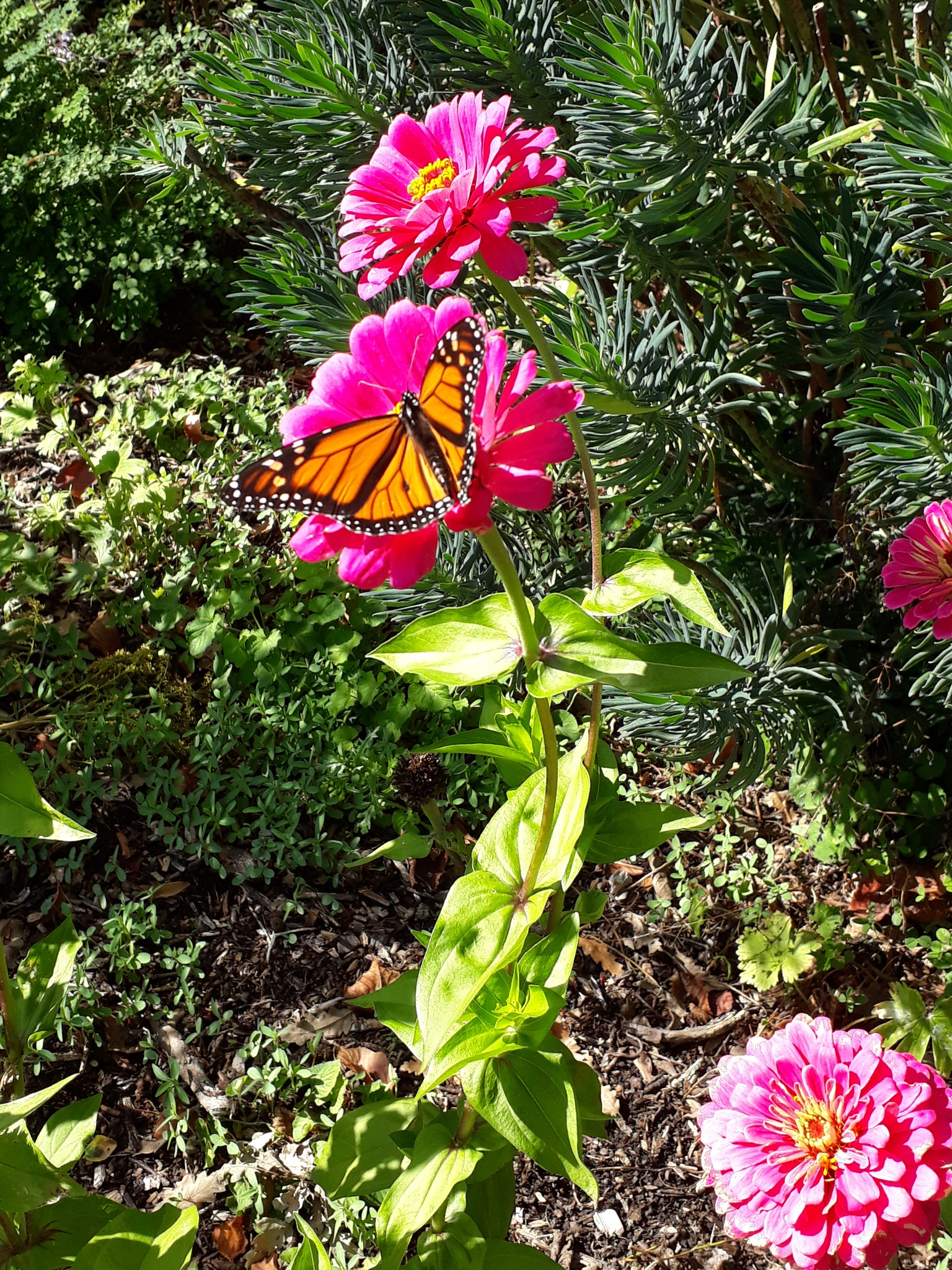 Danaus plexippus | species | Zinnia elegans | species | eats | Animalia | Arthropoda | Insecta | Lepidoptera | Nymphalidae | Danaus | Plantae | Tracheophyta | Magnoliopsida | Asterales | Asteraceae | Zinnia | -41.318586 | 173.232942 | 2021 | 4 | 6 | http://creativecommons.org/licenses/by-nc/4.0/ | https://www.inaturalist.org/observations/73105162 | |