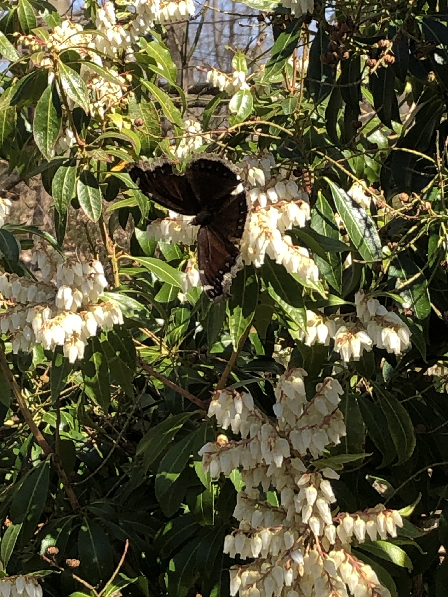Nymphalis antiopa | species | Pieris japonica | species | visitsFlowersOf | Animalia | Arthropoda | Insecta | Lepidoptera | Nymphalidae | Nymphalis | Plantae | Tracheophyta | Magnoliopsida | Ericales | Ericaceae | Pieris | 40.813263 | -74.547475 | 2021 | 4 | 6 | http://creativecommons.org/licenses/by-nc/4.0/ | https://www.inaturalist.org/observations/73132106 | |