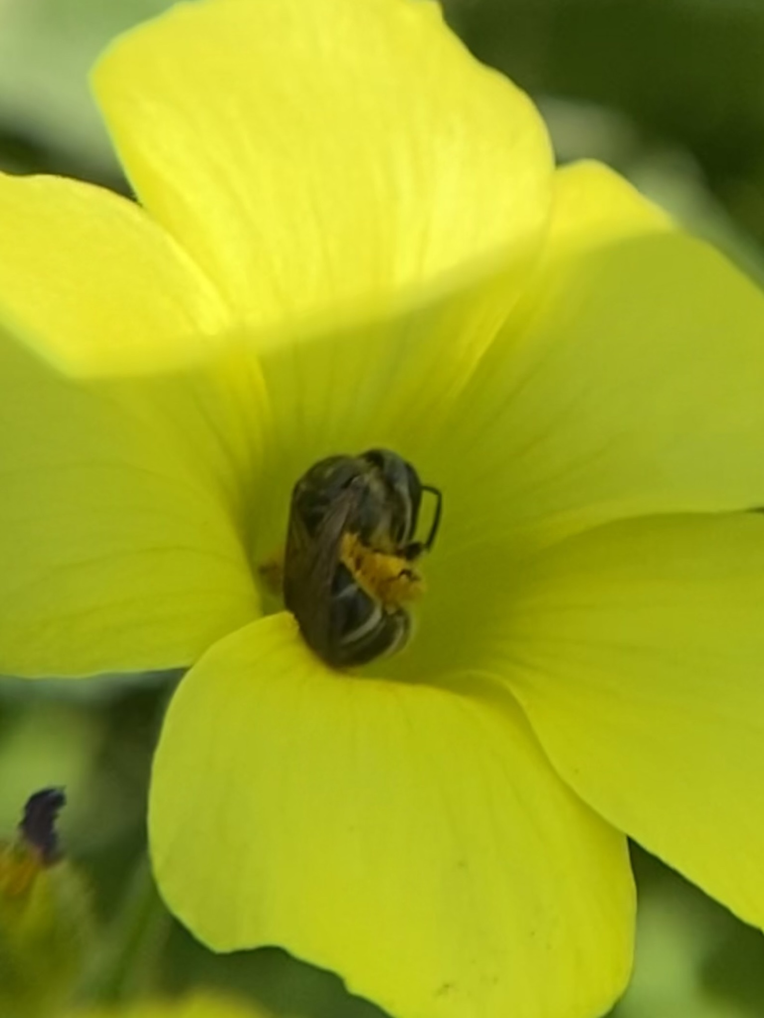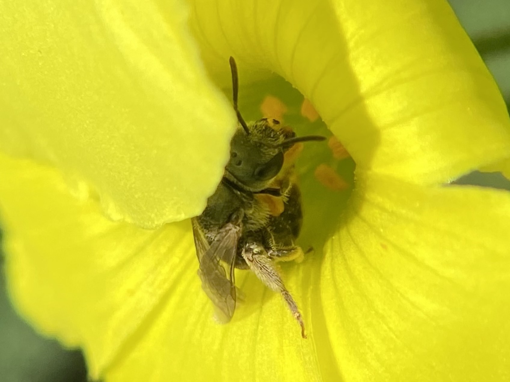 Halictus tripartitus | species | Oxalis | genus | eats | Animalia | Arthropoda | Insecta | Hymenoptera | Halictidae | Halictus | Plantae | Tracheophyta | Magnoliopsida | Oxalidales | Oxalidaceae | Oxalis | 37.483369 | -121.95275 | 2021 | 4 | 6 | http://creativecommons.org/licenses/by-nc/4.0/ | https://www.inaturalist.org/observations/73136909 | |