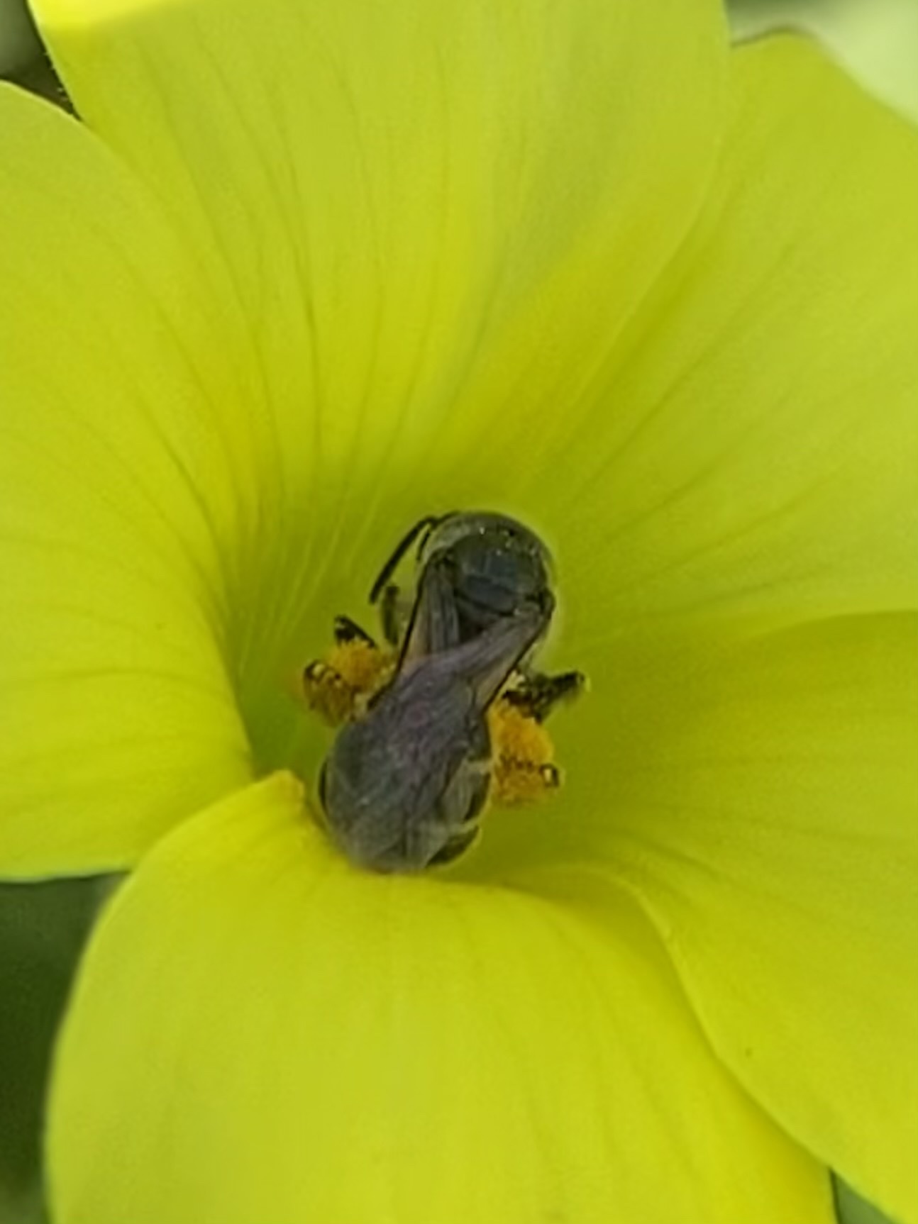 Halictus tripartitus | species | Oxalis | genus | eats | Animalia | Arthropoda | Insecta | Hymenoptera | Halictidae | Halictus | Plantae | Tracheophyta | Magnoliopsida | Oxalidales | Oxalidaceae | Oxalis | 37.524215 | -121.86596 | 2021 | 4 | 6 | http://creativecommons.org/licenses/by-nc/4.0/ | https://www.inaturalist.org/observations/73136755 | |