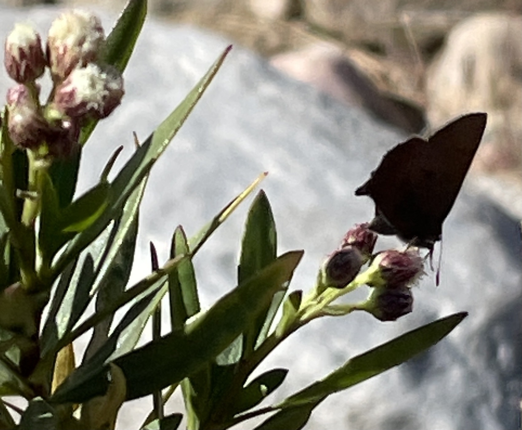 Incisalia irioides | species | Baccharis salicifolia | species | visitsFlowersOf | Animalia | Arthropoda | Insecta | Lepidoptera | Lycaenidae | Incisalia | Plantae | Tracheophyta | Magnoliopsida | Asterales | Asteraceae | Baccharis | 34.170095 | -116.559433 | 2021 | 4 | 3 | http://creativecommons.org/publicdomain/zero/1.0/ | https://www.inaturalist.org/observations/72959461 | |