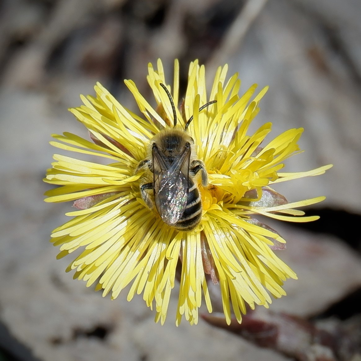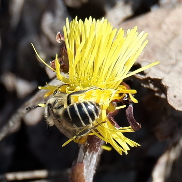 Colletes inaequalis | species | Tussilago farfara | species | visitsFlowersOf | Animalia | Arthropoda | Insecta | Hymenoptera | Colletidae | Colletes | Plantae | Tracheophyta | Magnoliopsida | Asterales | Asteraceae | Tussilago | 42.122634 | -79.216125 | 2021 | 4 | 4 | http://creativecommons.org/licenses/by-nc/4.0/ | https://www.inaturalist.org/observations/72966707 | |