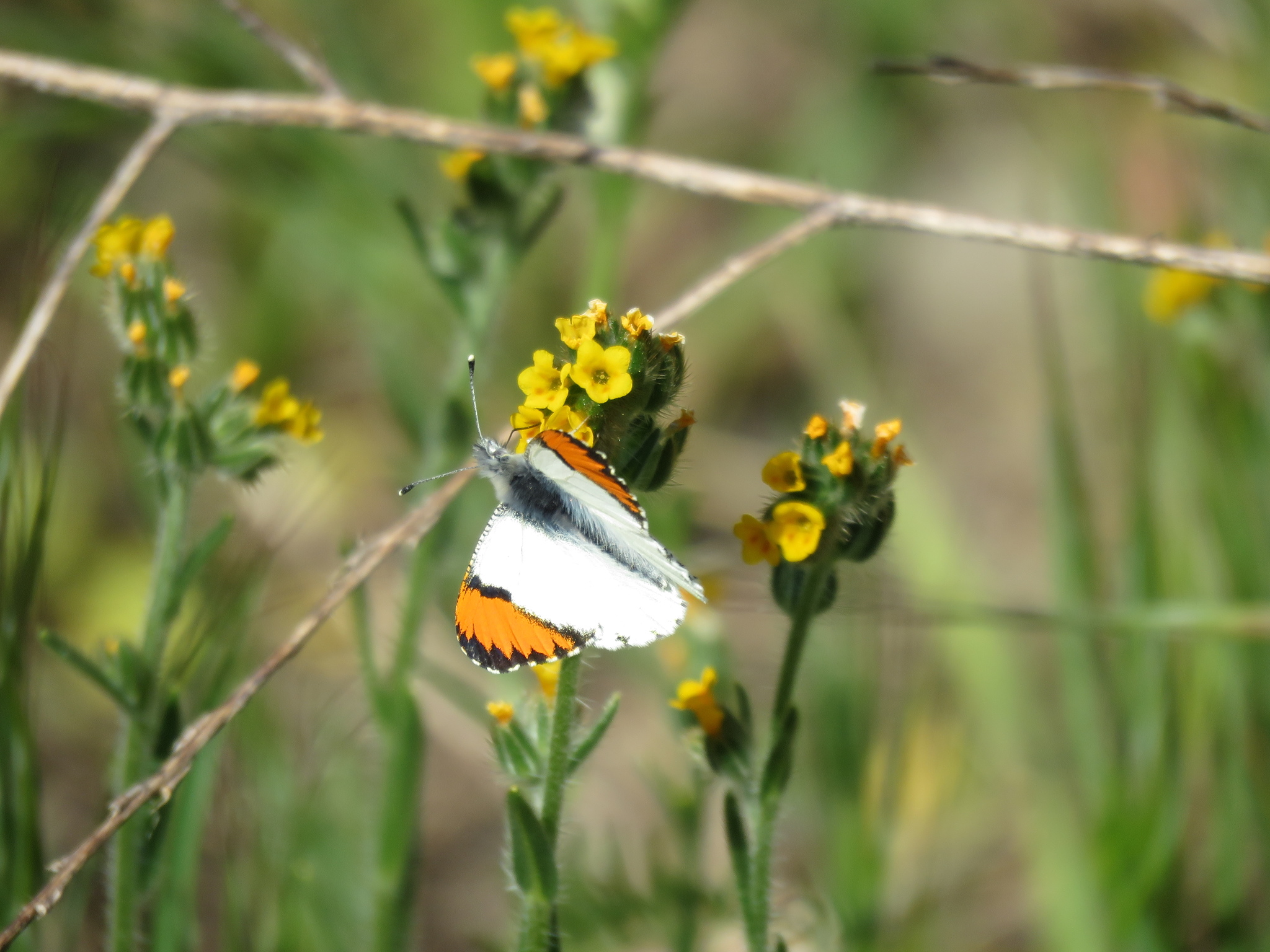 Anthocharis sara | species | Amsinckia | genus | eats | Animalia | Arthropoda | Insecta | Lepidoptera | Pieridae | Anthocharis | Plantae | Tracheophyta | Magnoliopsida | Boraginales | Boraginaceae | Amsinckia | 37.333412 | -121.708717 | 2021 | 4 | 4 | http://creativecommons.org/licenses/by-nc/4.0/ | https://www.inaturalist.org/observations/72977382 | |