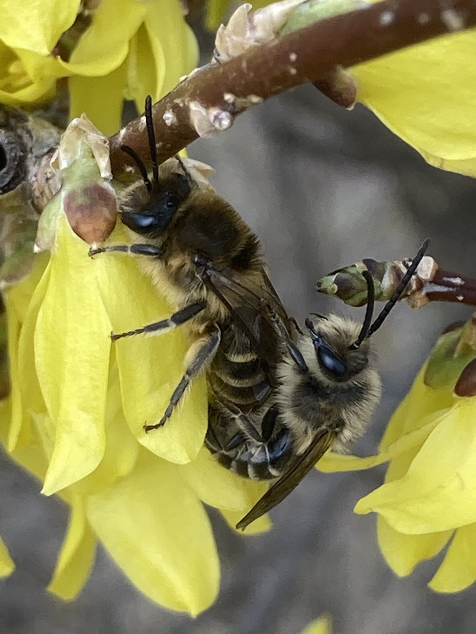 Colletes inaequalis | species | Forsythia | genus | visitsFlowersOf | Animalia | Arthropoda | Insecta | Hymenoptera | Colletidae | Colletes | Plantae | Tracheophyta | Magnoliopsida | Lamiales | Oleaceae | Forsythia | 42.691881 | -73.751095 | 2021 | 4 | 4 | http://creativecommons.org/licenses/by/4.0/ | https://www.inaturalist.org/observations/72984417 | |