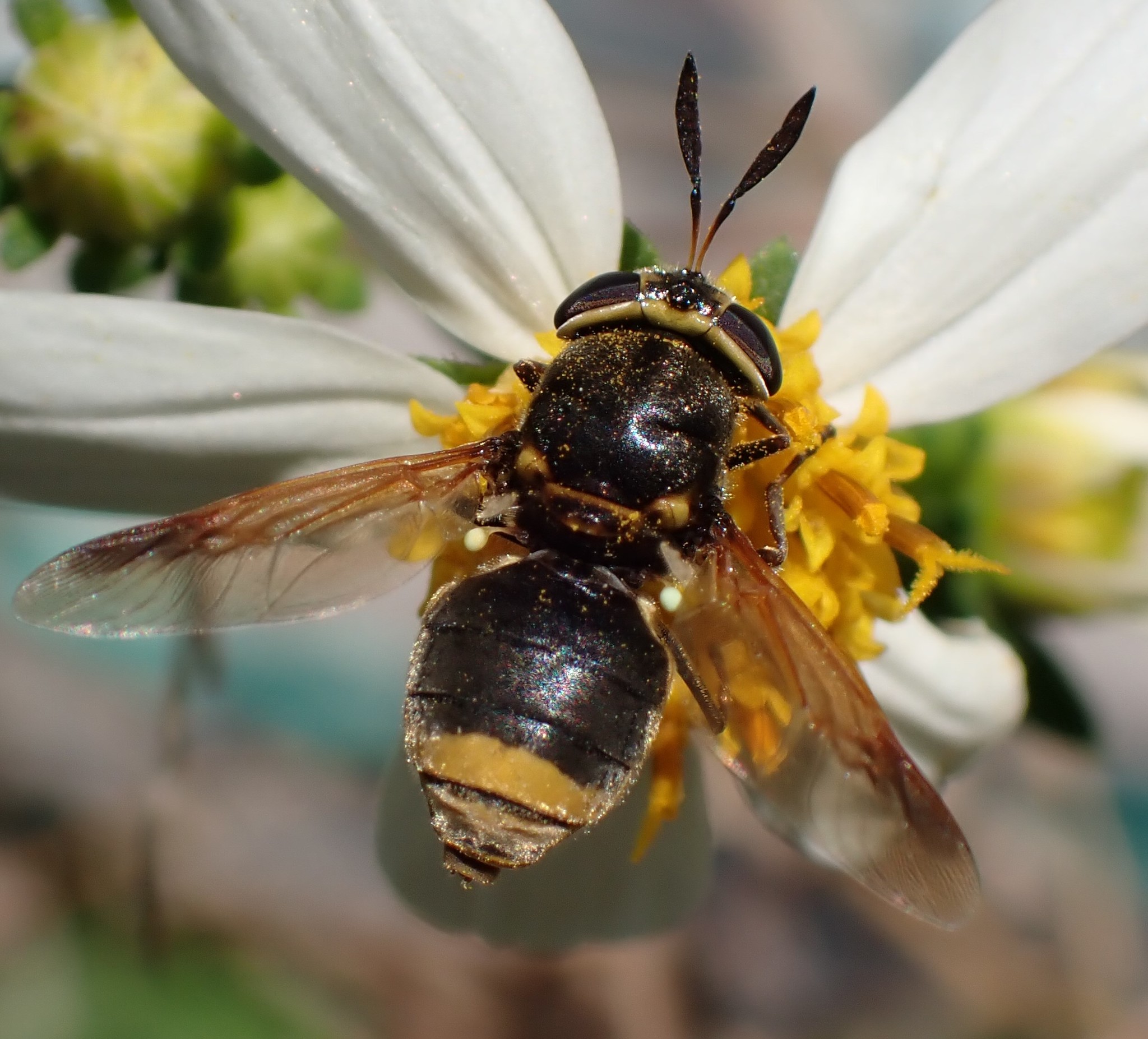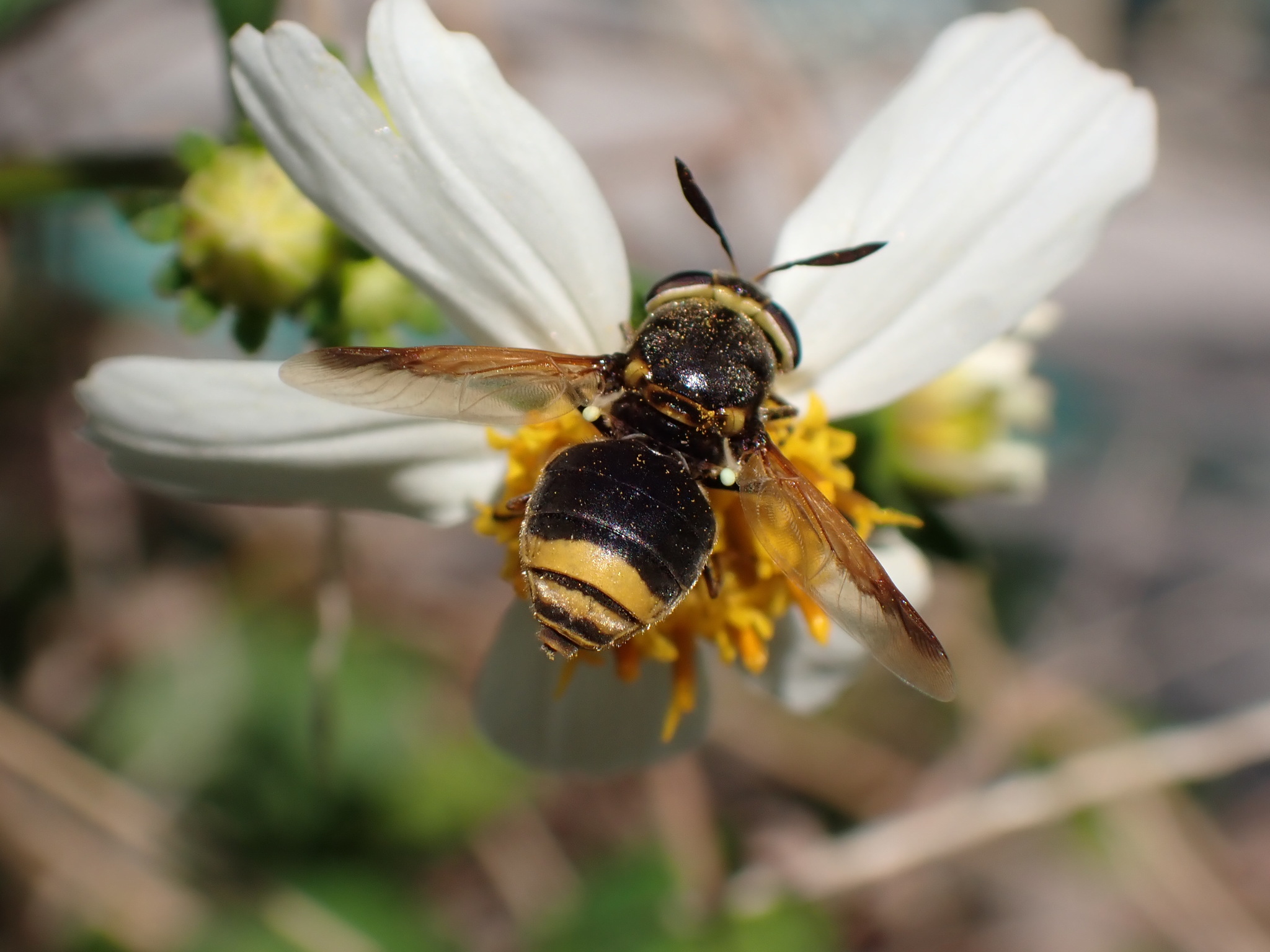 Hoplitimyia mutabilis | species | Bidens alba | species | visitsFlowersOf | Animalia | Arthropoda | Insecta | Diptera | Stratiomyidae | Hoplitimyia | Plantae | Tracheophyta | Magnoliopsida | Asterales | Asteraceae | Bidens | 27.438384 | -82.684215 | 2021 | 4 | 3 | http://creativecommons.org/licenses/by-nc/4.0/ | https://www.inaturalist.org/observations/72834135 | |