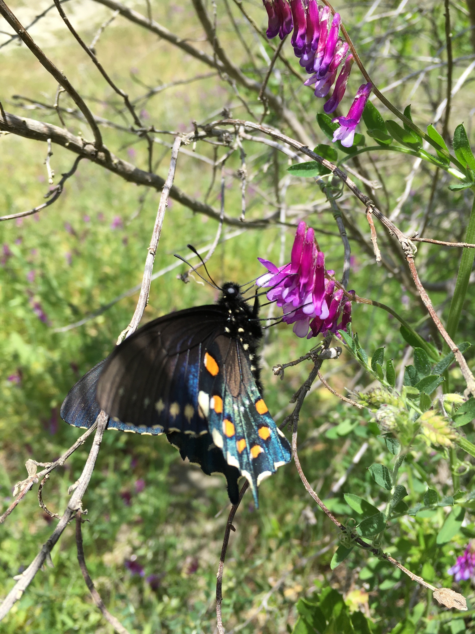 Battus philenor | species | Vicia | genus | eats | Animalia | Arthropoda | Insecta | Lepidoptera | Papilionidae | Battus | Plantae | Tracheophyta | Magnoliopsida | Fabales | Fabaceae | Vicia | 37.940914 | -122.300199 | 2021 | 4 | 3 | http://creativecommons.org/licenses/by-nc/4.0/ | https://www.inaturalist.org/observations/72833338 | |