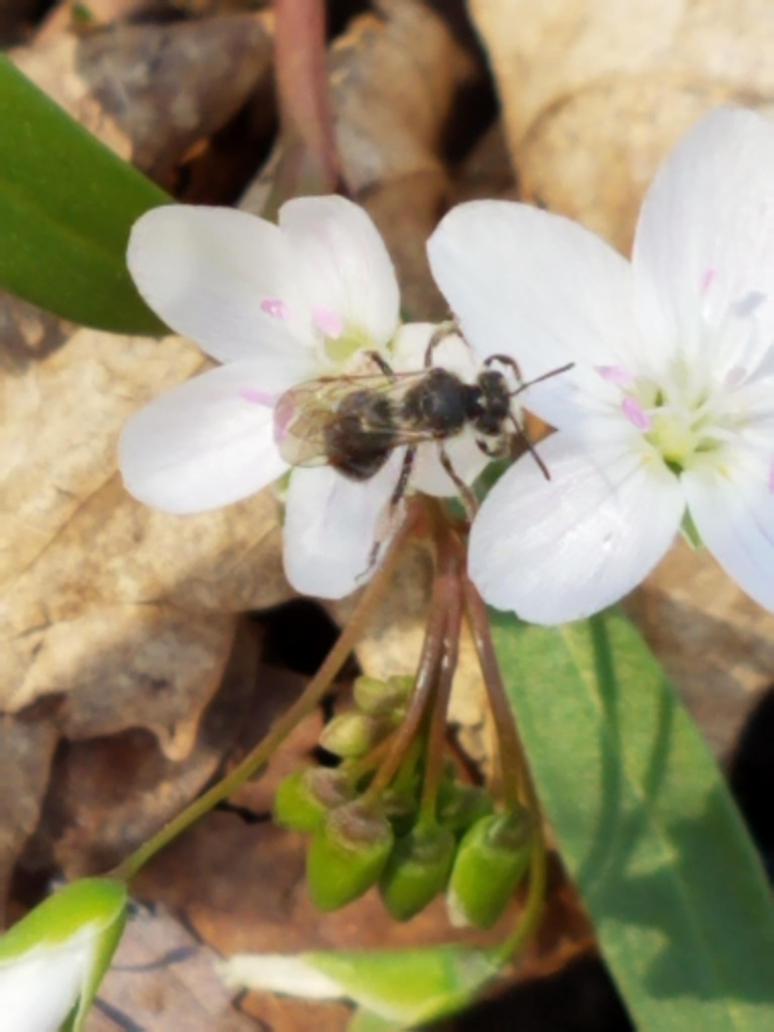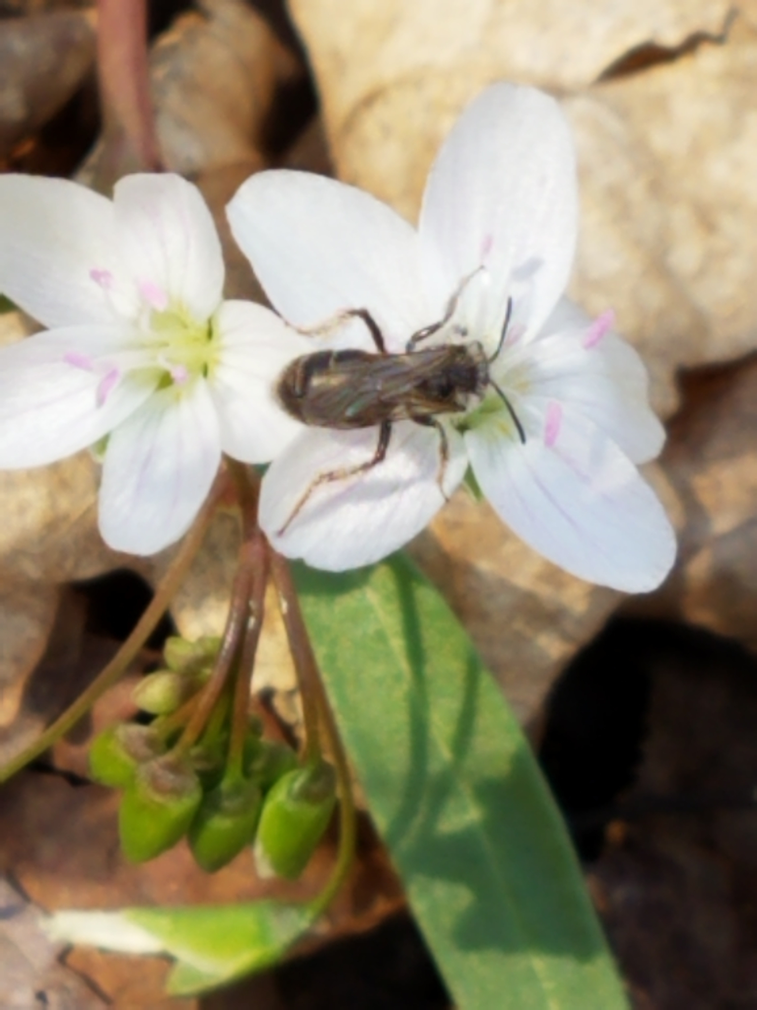Andrena erigeniae | species | Claytonia virginica | species | visitsFlowersOf | Animalia | Arthropoda | Insecta | Hymenoptera | Andrenidae | Andrena | Plantae | Tracheophyta | Magnoliopsida | Caryophyllales | Montiaceae | Claytonia | 40.130531 | -87.782241 | 2021 | 4 | 3 | http://creativecommons.org/licenses/by-nc/4.0/ | https://www.inaturalist.org/observations/72848326 | |