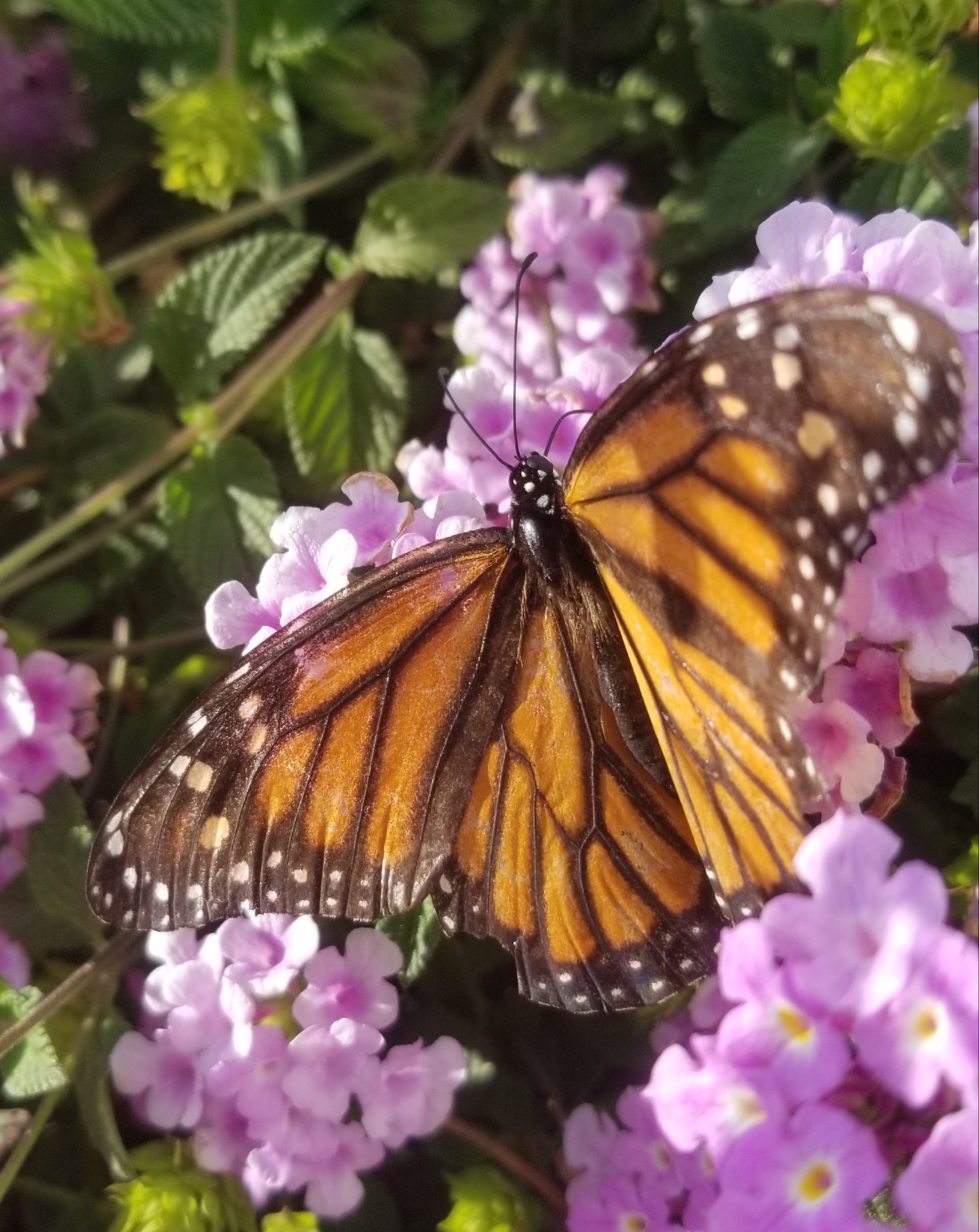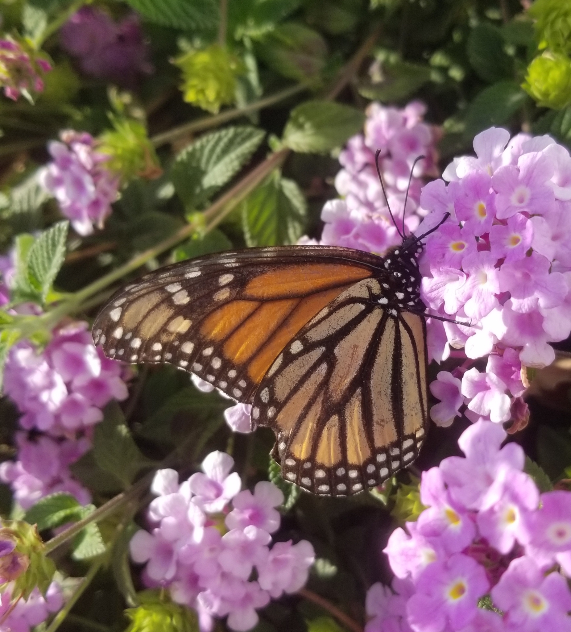 Danaus plexippus | species | Lantana | genus | visitsFlowersOf | Animalia | Arthropoda | Insecta | Lepidoptera | Nymphalidae | Danaus | Plantae | Tracheophyta | Magnoliopsida | Lamiales | Verbenaceae | Lantana | 34.096084 | -117.1506 | 2021 | 4 | 3 | http://creativecommons.org/licenses/by-nc/4.0/ | https://www.inaturalist.org/observations/72849245 | |