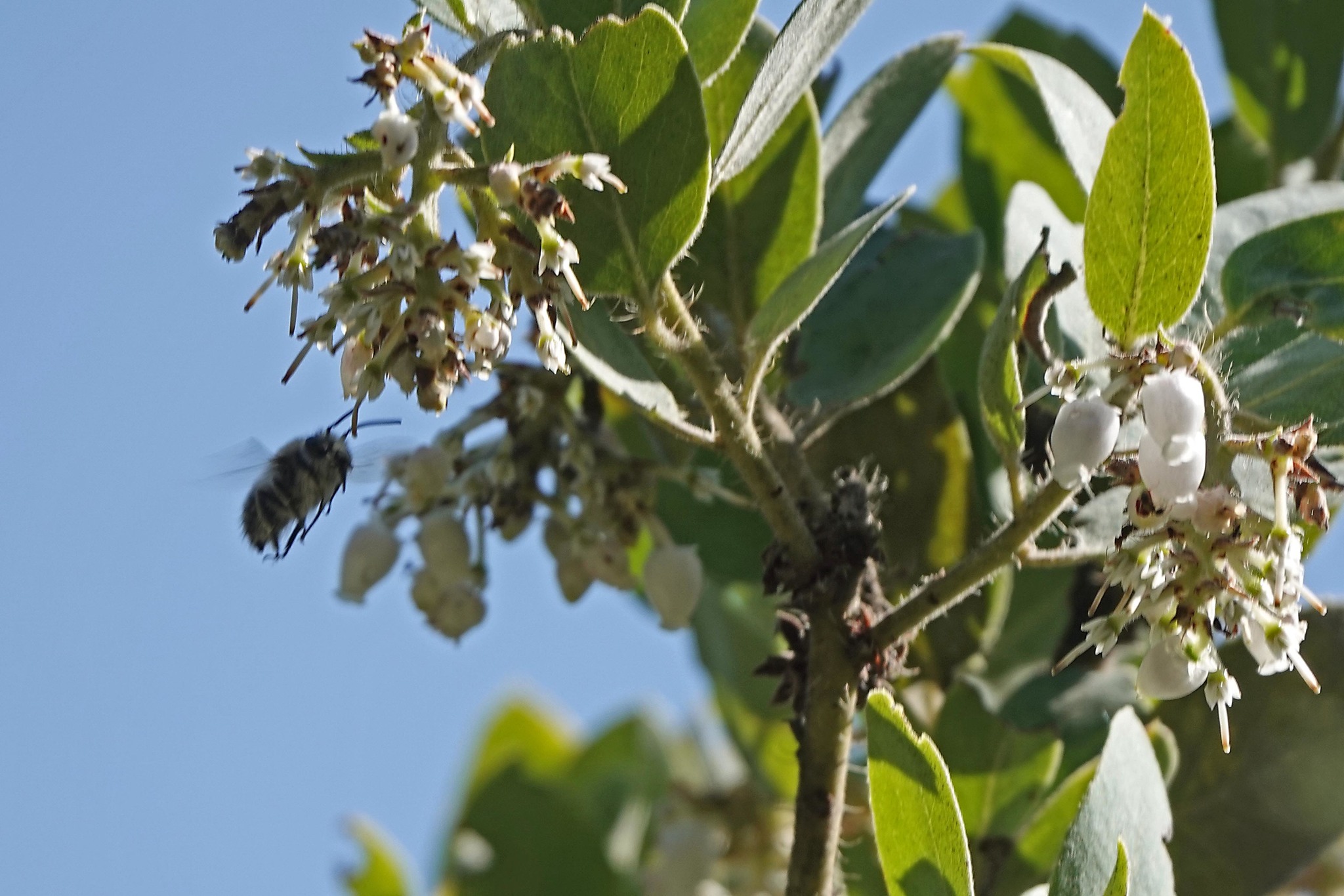 Habropoda depressa | species | Arctostaphylos | genus | eats | Animalia | Arthropoda | Insecta | Hymenoptera | Apidae | Habropoda | Plantae | Tracheophyta | Magnoliopsida | Ericales | Ericaceae | Arctostaphylos | 37.173971 | -121.856329 | 2021 | 4 | 2 | http://creativecommons.org/licenses/by-nc/4.0/ | https://www.inaturalist.org/observations/72751365 | |