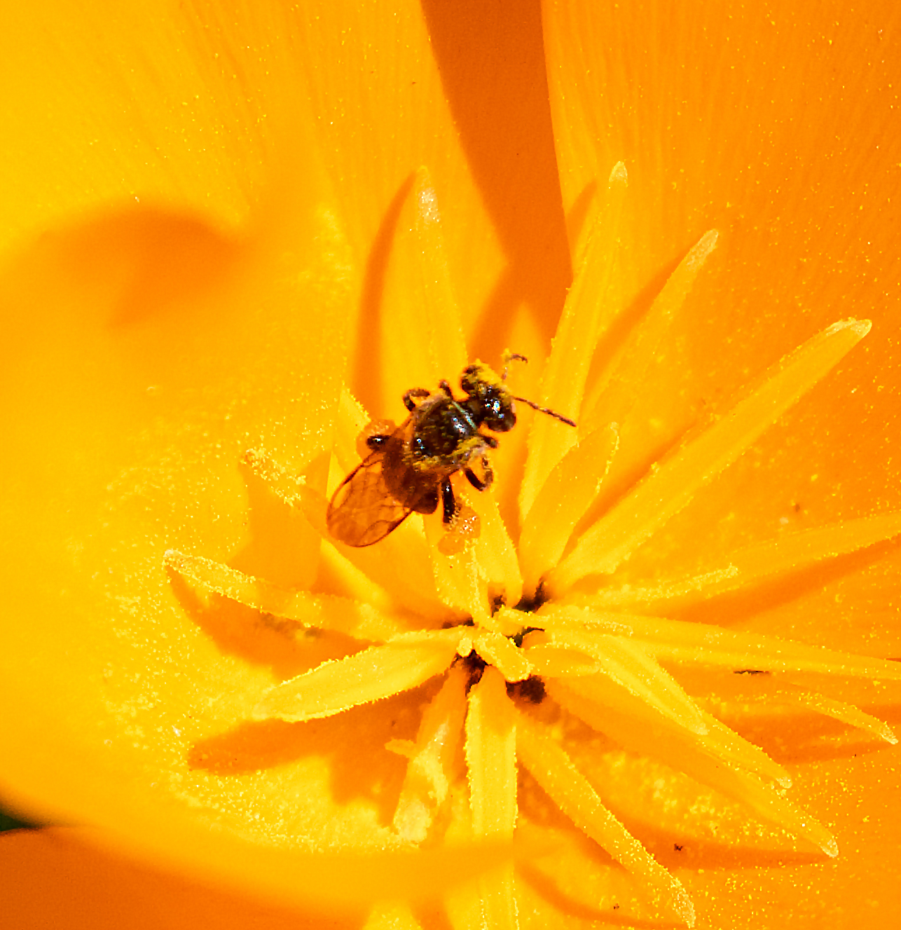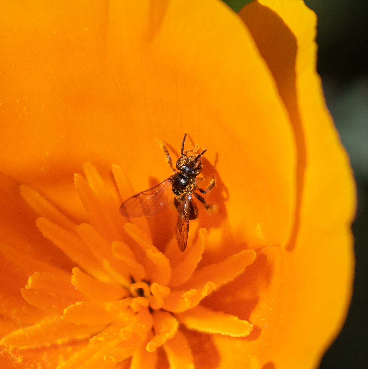 Plebeia emerina | species | Eschscholzia californica | species | eats | Animalia | Arthropoda | Insecta | Hymenoptera | Apidae | Plebeia | Plantae | Tracheophyta | Magnoliopsida | Ranunculales | Papaveraceae | Eschscholzia | 37.440332 | -122.148347 | 2021 | 3 | 30 | http://creativecommons.org/licenses/by-nc/4.0/ | https://www.inaturalist.org/observations/72757964 | |