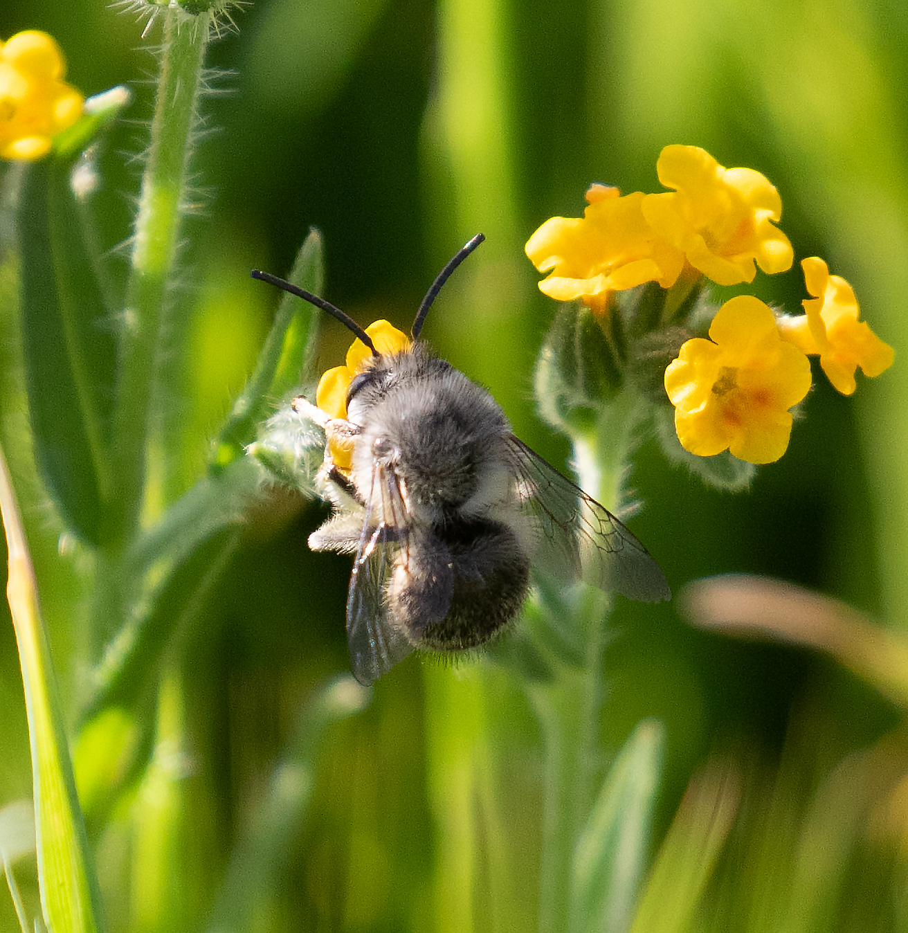 Habropoda depressa | species | Amsinckia | genus | eats | Animalia | Arthropoda | Insecta | Hymenoptera | Apidae | Habropoda | Plantae | Tracheophyta | Magnoliopsida | Boraginales | Boraginaceae | Amsinckia | 37.21367 | -121.71997 | 2021 | 4 | 1 | http://creativecommons.org/licenses/by-nc/4.0/ | https://www.inaturalist.org/observations/72758324 | |