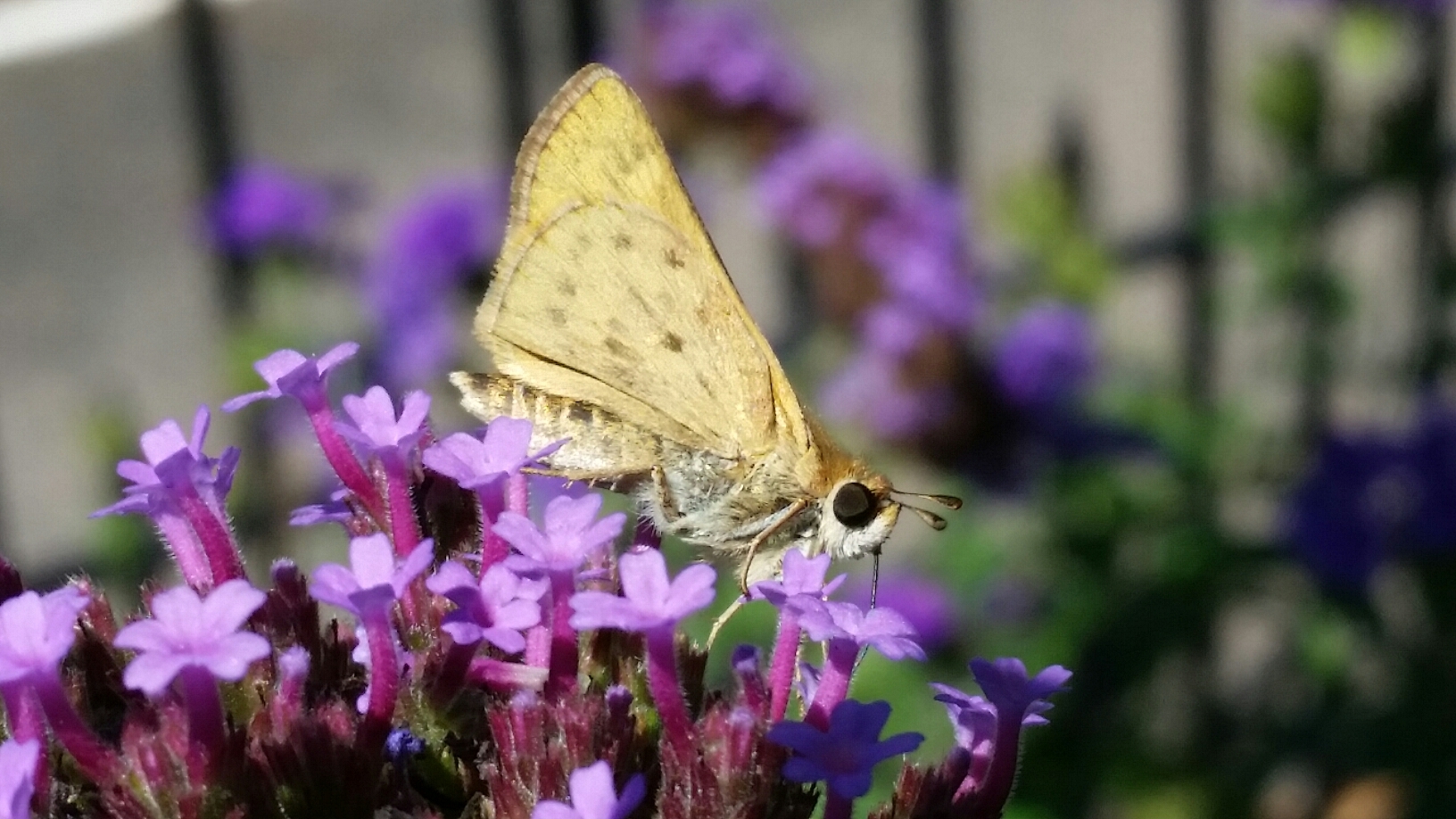 Hylephila phyleus | species | Verbena | genus | visitsFlowersOf | Animalia | Arthropoda | Insecta | Lepidoptera | Hesperiidae | Hylephila | Plantae | Tracheophyta | Magnoliopsida | Lamiales | Verbenaceae | Verbena | 38.580349 | -122.637262 | 2019 | 8 | 21 | http://creativecommons.org/licenses/by/4.0/ | https://www.inaturalist.org/observations/72781239 | |