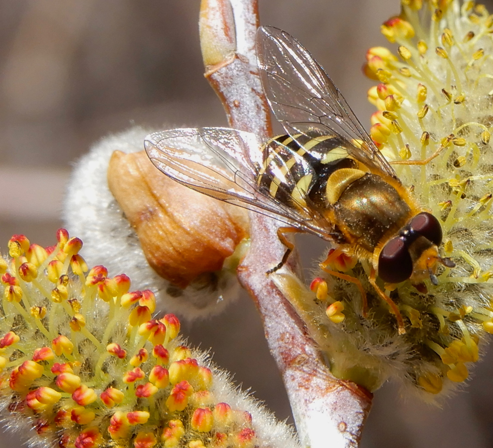 Syrphus opinator | species | Salix irrorata | species | visitsFlowersOf | Animalia | Arthropoda | Insecta | Diptera | Syrphidae | Syrphus | Plantae | Tracheophyta | Magnoliopsida | Malpighiales | Salicaceae | Salix | 35.152795 | -106.47072 | 2021 | 3 | 25 | http://creativecommons.org/licenses/by-nc/4.0/ | https://www.inaturalist.org/observations/72788712 | |