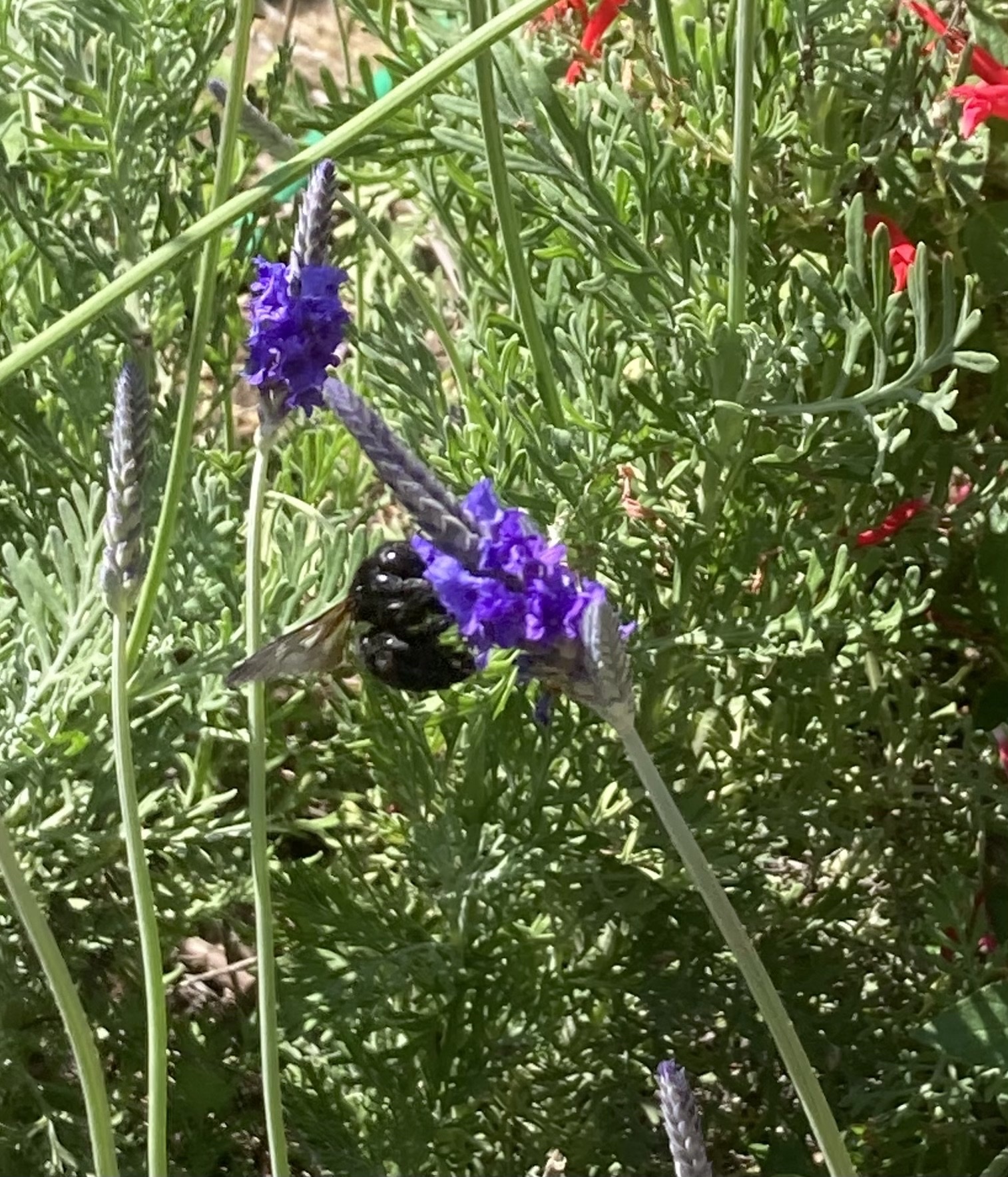 Xylocopa sonorina | species | Lavandula | genus | eats | Animalia | Arthropoda | Insecta | Hymenoptera | Apidae | Xylocopa | Plantae | Tracheophyta | Magnoliopsida | Lamiales | Lamiaceae | Lavandula | 37.237281 | -121.839622 | 2021 | 3 | 29 | http://creativecommons.org/licenses/by-nc/4.0/ | https://www.inaturalist.org/observations/72385641 | |