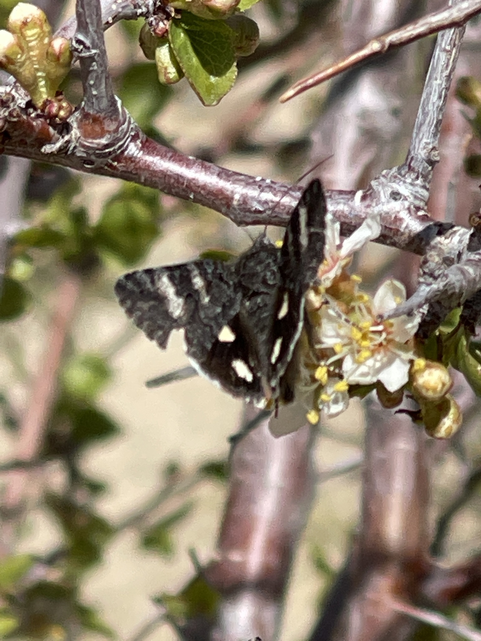 Litocala sexsignata | species | Prunus fremontii | species | visitsFlowersOf | Animalia | Arthropoda | Insecta | Lepidoptera | Erebidae | Litocala | Plantae | Tracheophyta | Magnoliopsida | Rosales | Rosaceae | Prunus | 33.604828 | -116.439212 | 2021 | 3 | 28 | http://creativecommons.org/licenses/by-nc/4.0/ | https://www.inaturalist.org/observations/72309082 | |