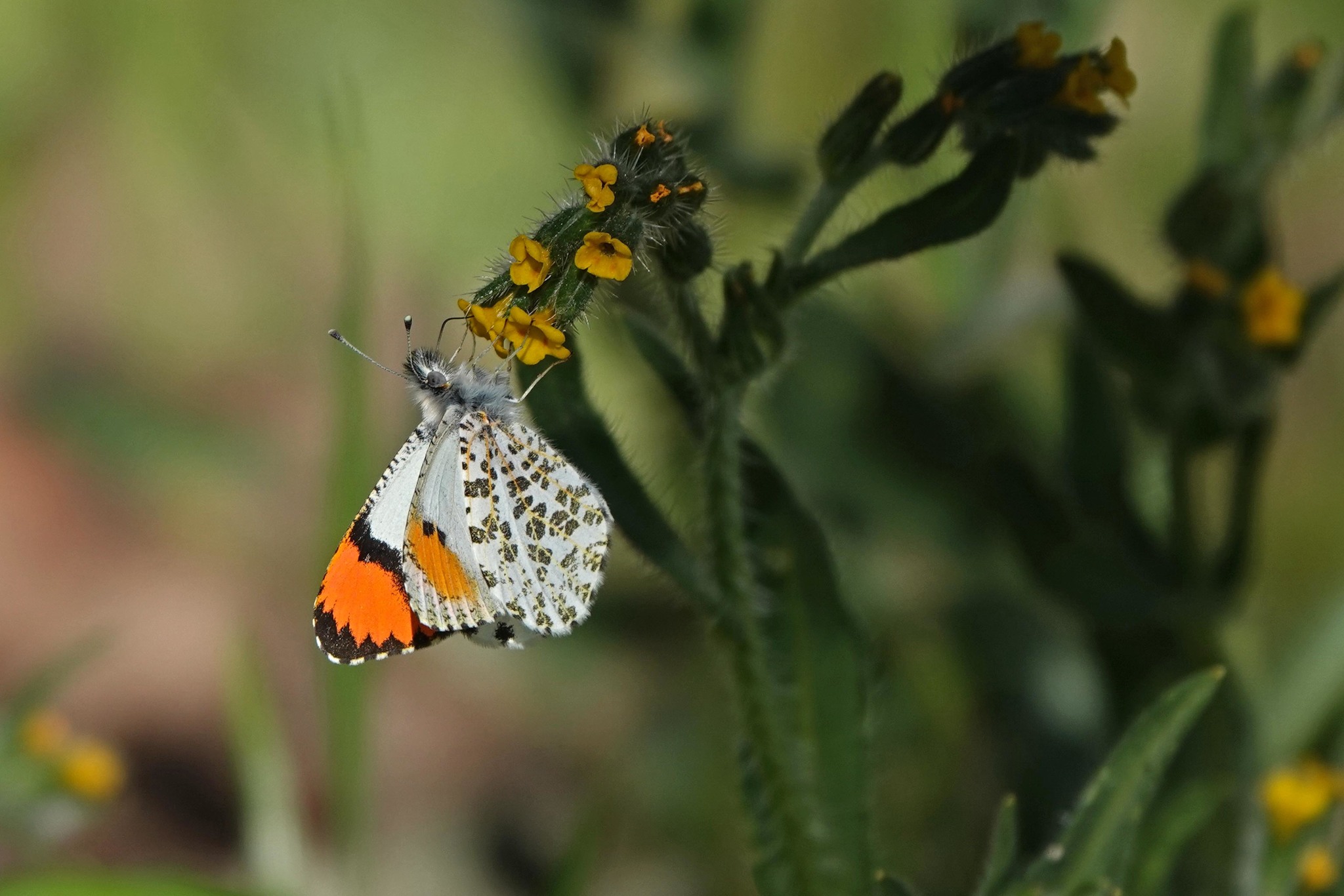 Anthocharis sara | species | Amsinckia | genus | eats | Animalia | Arthropoda | Insecta | Lepidoptera | Pieridae | Anthocharis | Plantae | Tracheophyta | Magnoliopsida | Boraginales | Boraginaceae | Amsinckia | 37.07457 | -121.529429 | 2021 | 3 | 27 | http://creativecommons.org/licenses/by-nc/4.0/ | https://www.inaturalist.org/observations/72312311 |