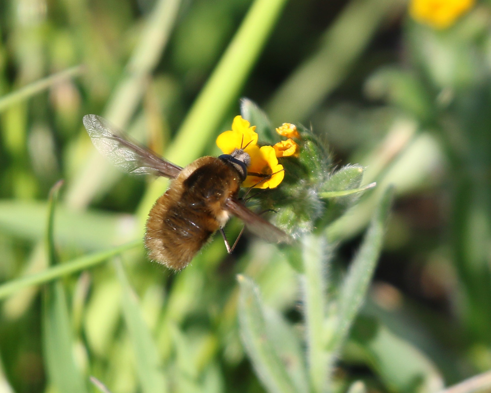 Bombylius major | species | Amsinckia | genus | eats | Animalia | Arthropoda | Insecta | Diptera | Bombyliidae | Bombylius | Plantae | Tracheophyta | Magnoliopsida | Boraginales | Boraginaceae | Amsinckia | 37.218623 | -121.70893 | 2021 | 3 | 28 | http://creativecommons.org/licenses/by-nc/4.0/ | https://www.inaturalist.org/observations/72319979 | |