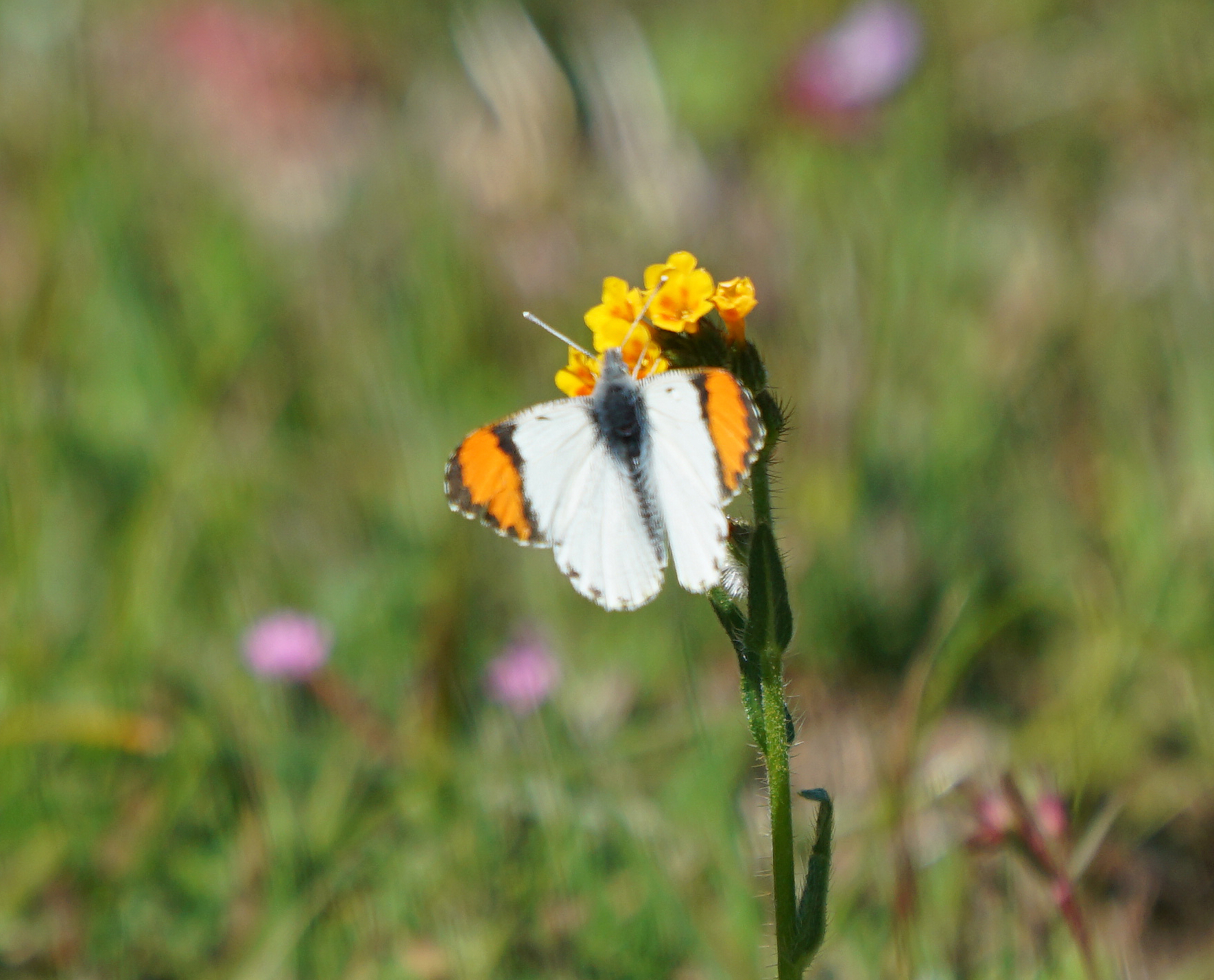 Anthocharis sara | species | Amsinckia | genus | eats | Animalia | Arthropoda | Insecta | Lepidoptera | Pieridae | Anthocharis | Plantae | Tracheophyta | Magnoliopsida | Boraginales | Boraginaceae | Amsinckia | 38.61079 | -122.557701 | 2021 | 3 | 28 | http://creativecommons.org/licenses/by-nc/4.0/ | https://www.inaturalist.org/observations/72334271 | |