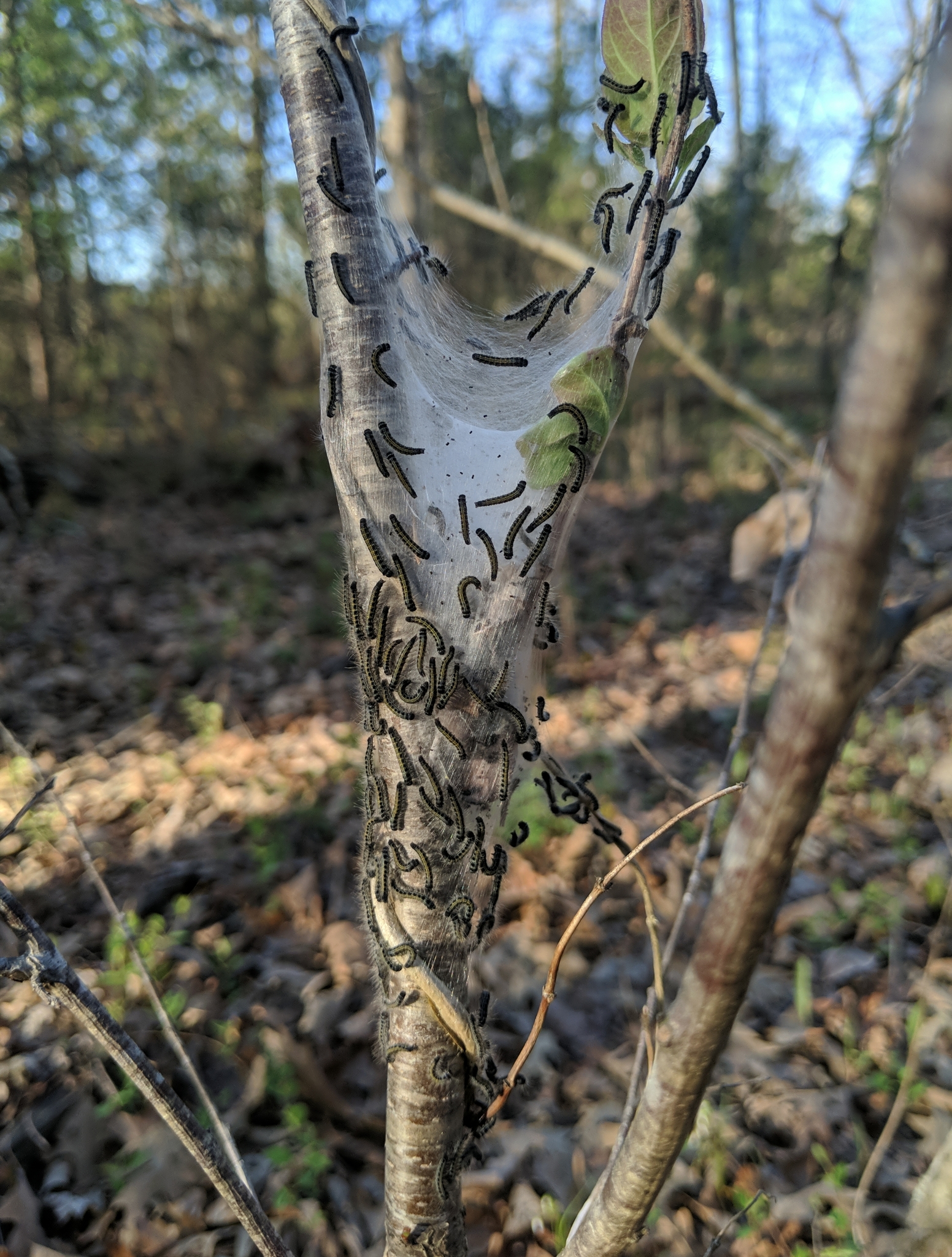 Malacosoma americana | species | Prunus serotina | species | interactsWith | Animalia | Arthropoda | Insecta | Lepidoptera | Lasiocampidae | Malacosoma | Plantae | Tracheophyta | Magnoliopsida | Rosales | Rosaceae | Prunus | 35.073862 | -92.495778 | 2021 | 3 | 28 | http://creativecommons.org/licenses/by-nc/4.0/ | https://www.inaturalist.org/observations/72300429 | |
