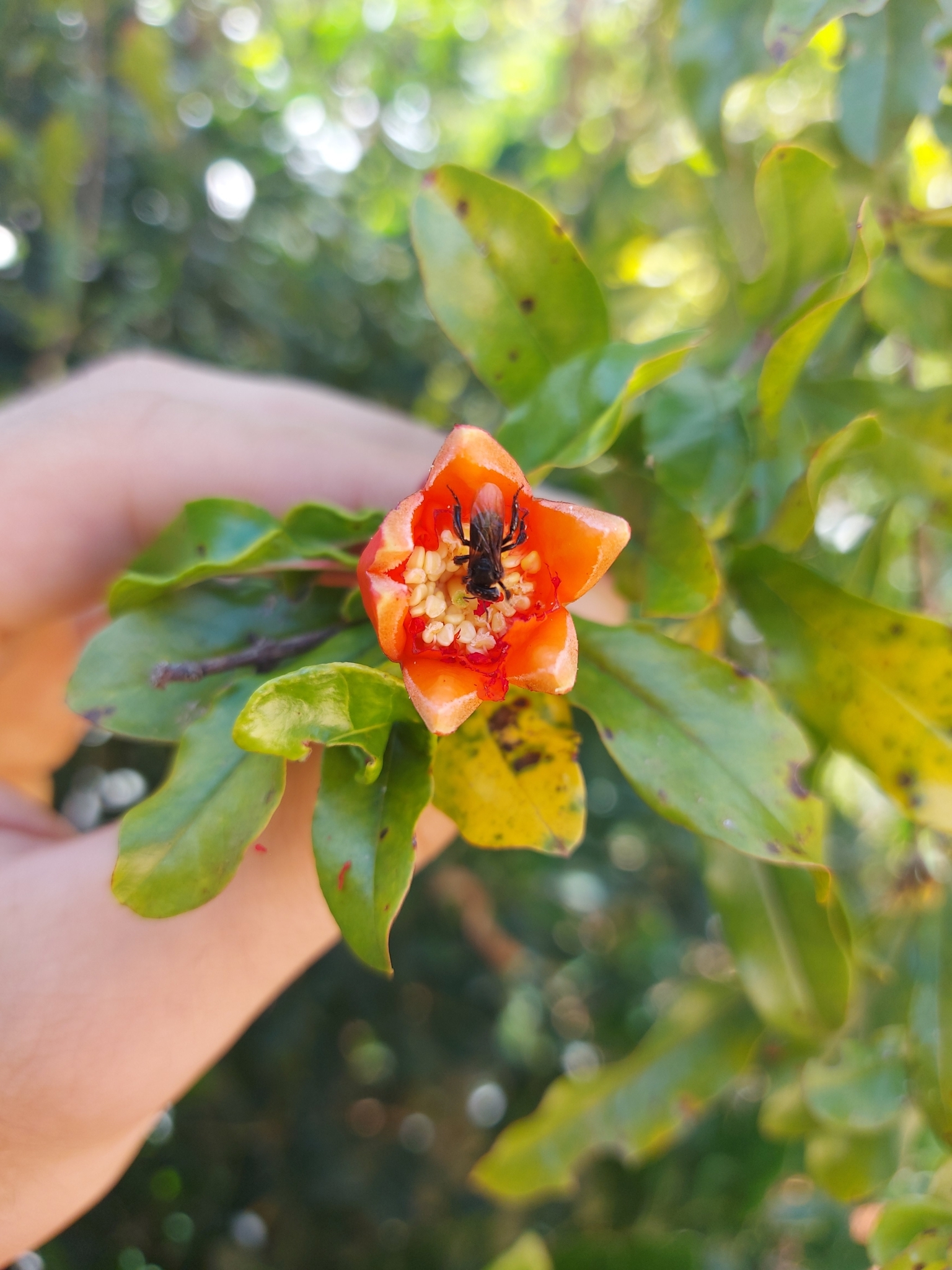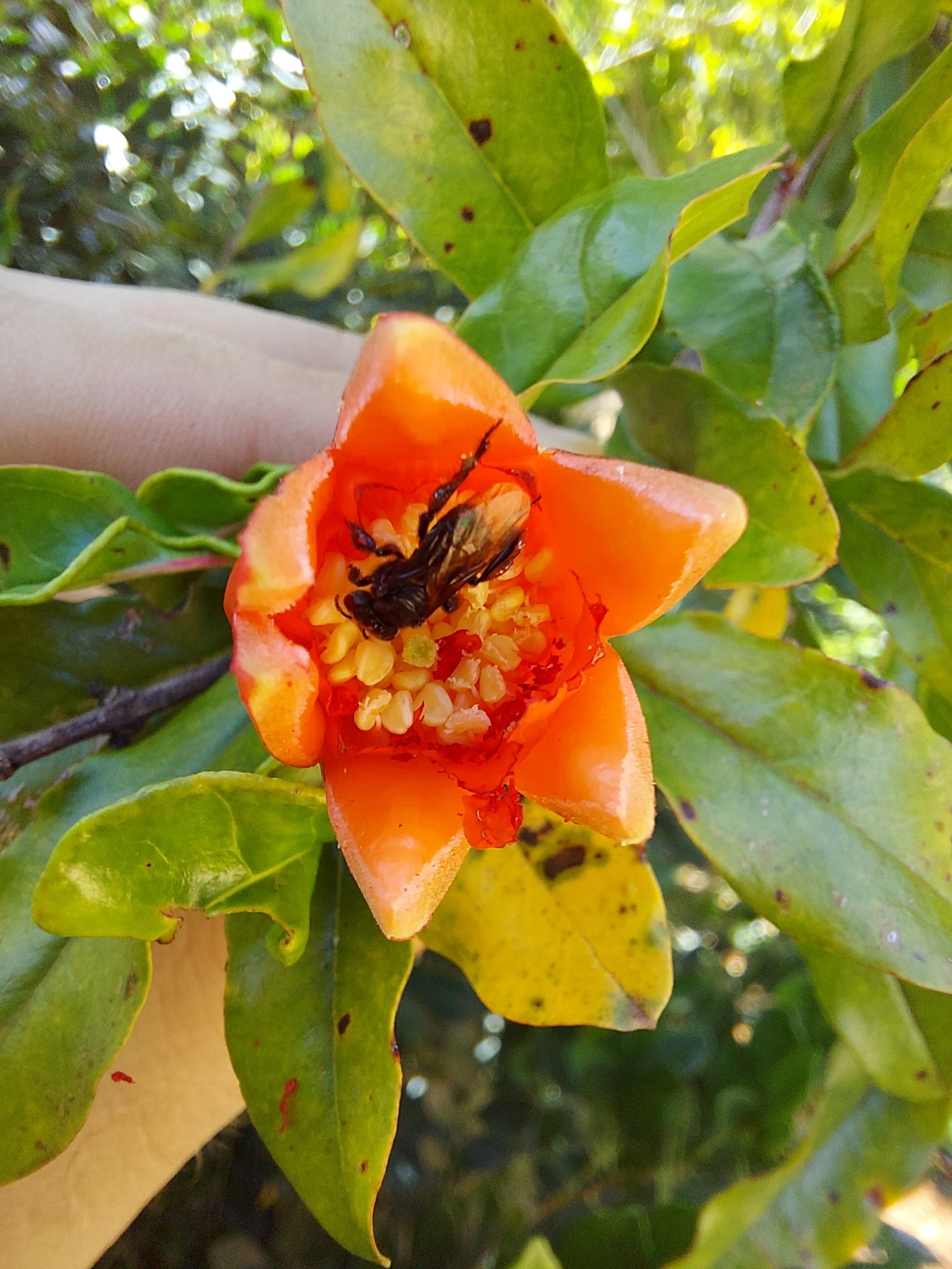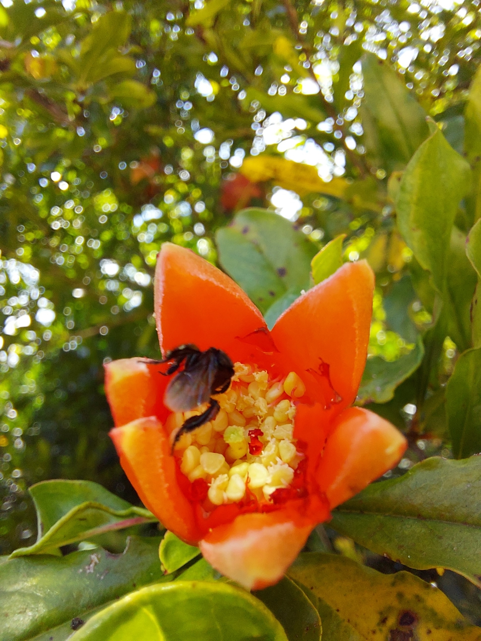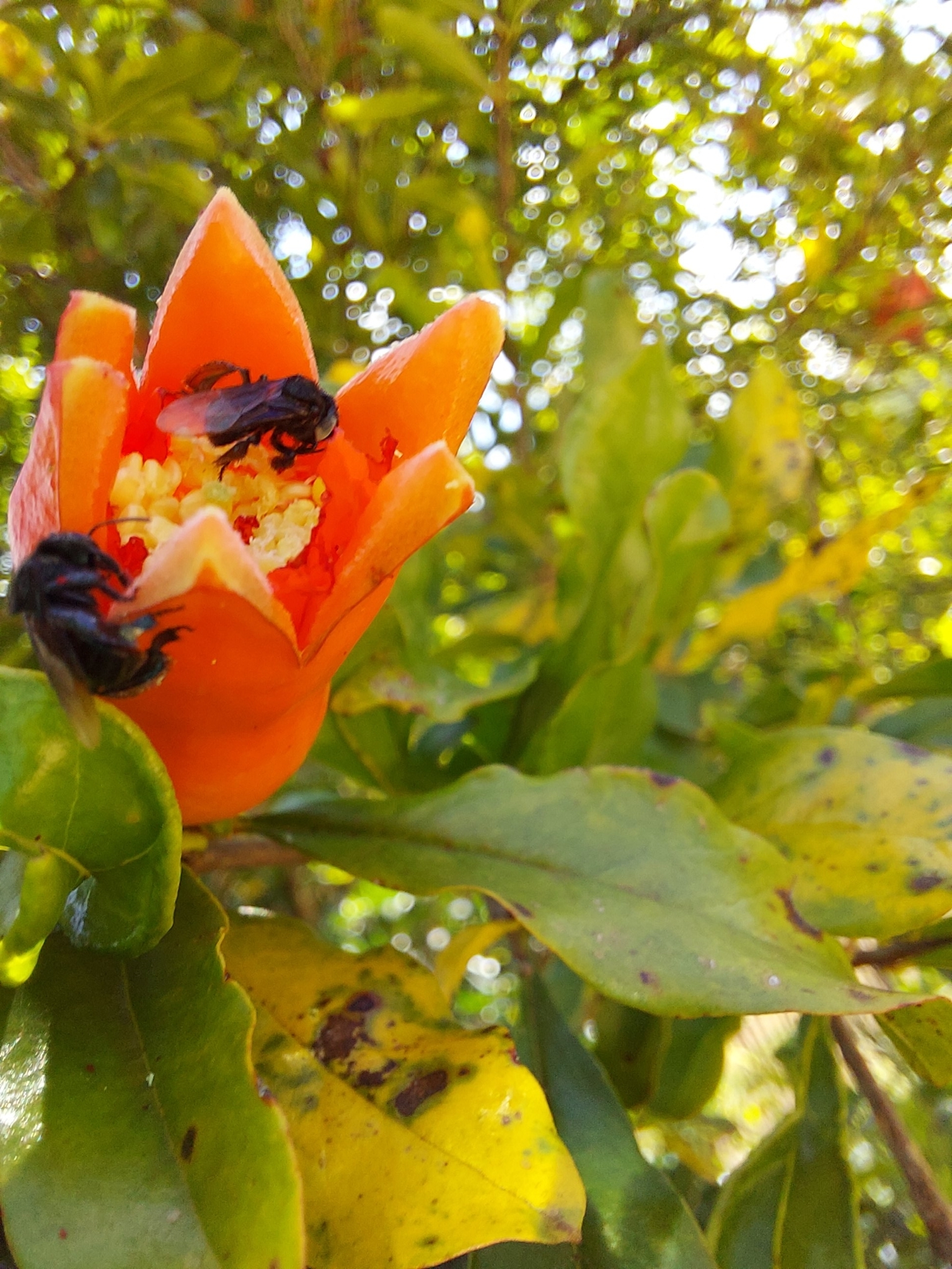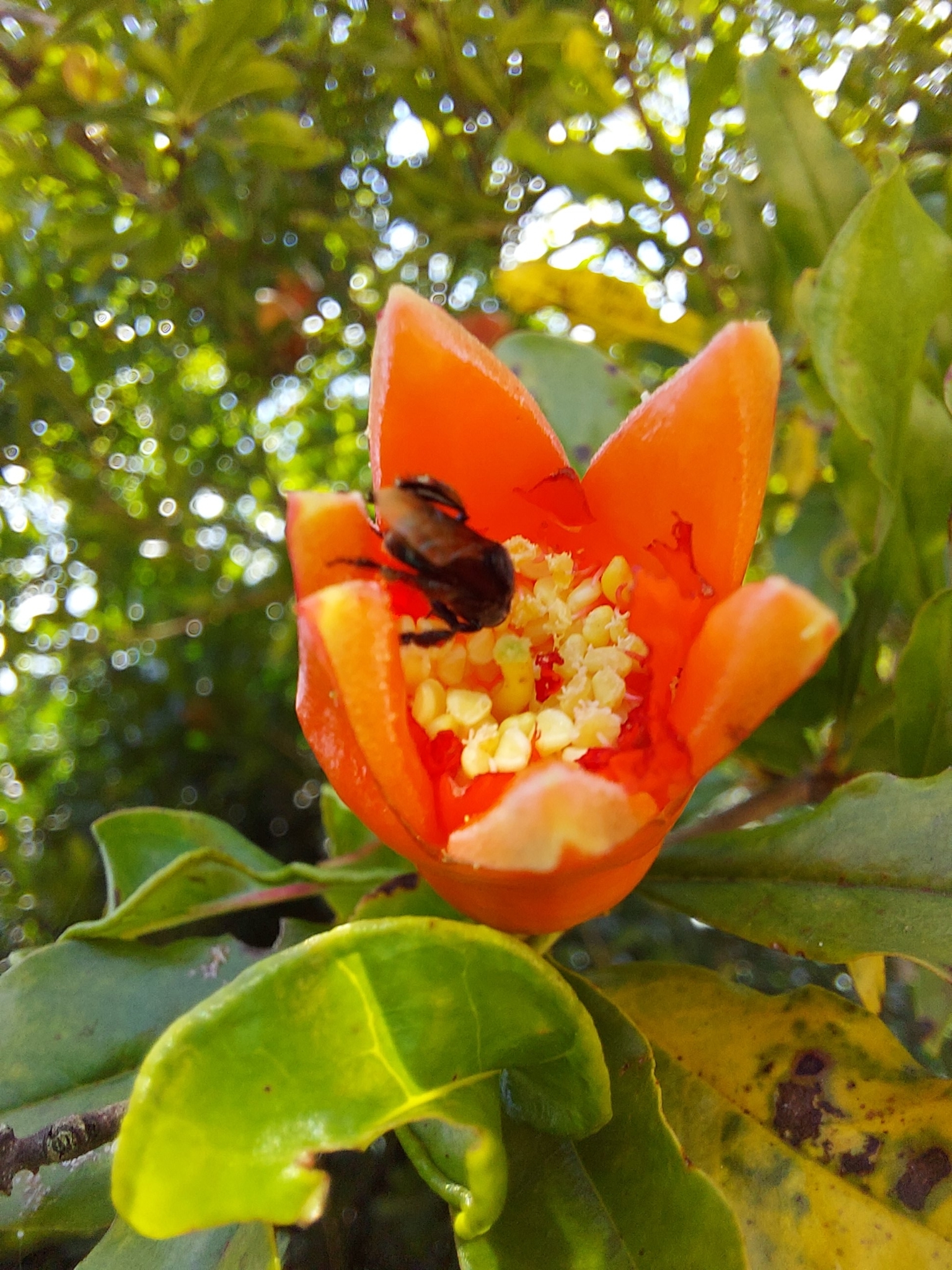 Trigona spinipes | species | Punica granatum | species | visitsFlowersOf | Animalia | Arthropoda | Insecta | Hymenoptera | Apidae | Trigona | Plantae | Tracheophyta | Magnoliopsida | Myrtales | Lythraceae | Punica | -20.290553 | -43.992749 | 2021 | 3 | 27 | http://creativecommons.org/licenses/by/4.0/ | https://www.inaturalist.org/observations/72296181 | |